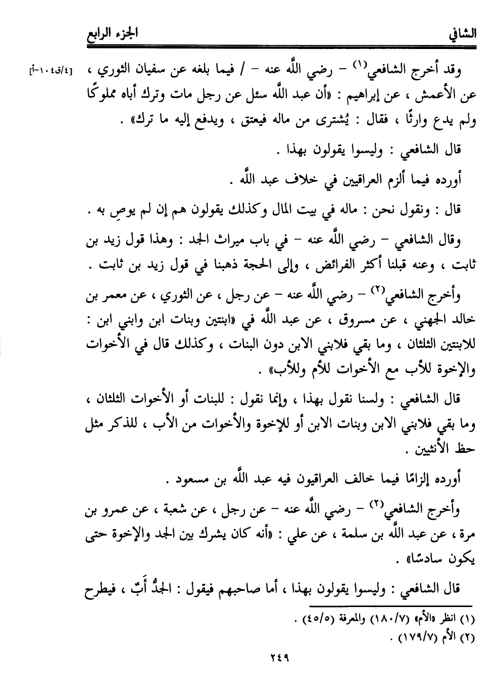 (¬1) انظر "الأم" (7/ 180) والمعرفة (5/ 45).