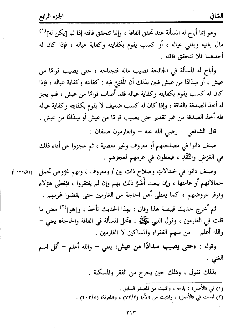 قال الشافعي -رضي الله عنه- والغارمون صنفان: