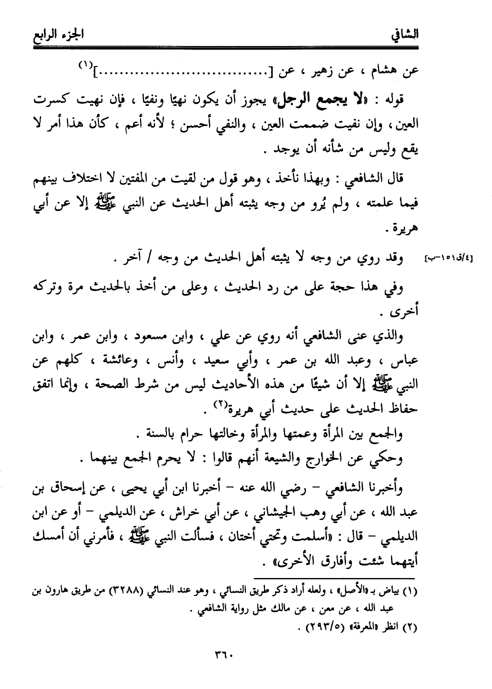 (¬1) بياض بـ "الأصل"، ولعله أراد ذكر طريق النسائي، وهو عند النسائي (3288) من طريق هارون بن عبد الله، عن معن، عن مالك مثل رواية الشافعي.
