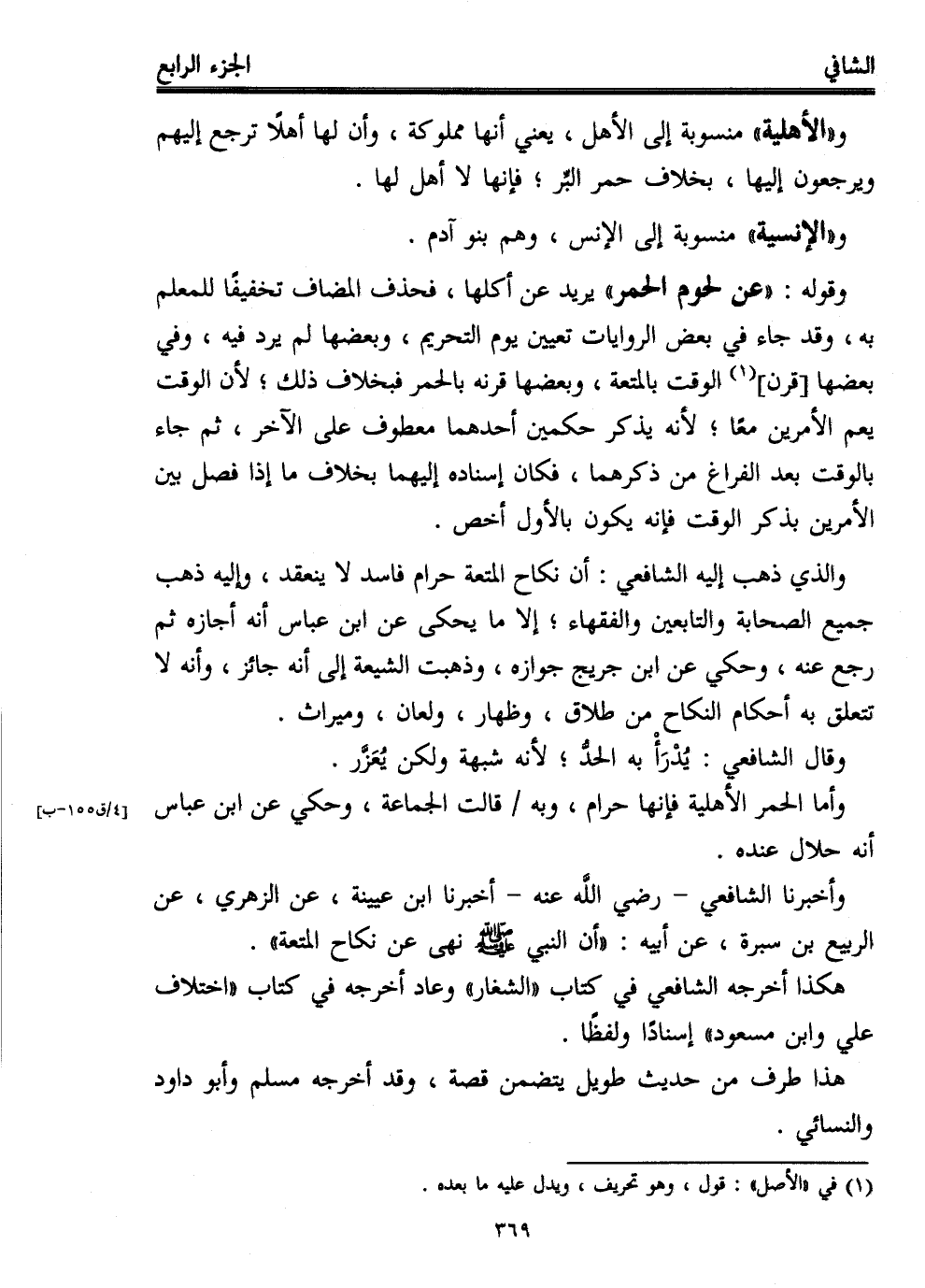 وأخبرنا الشافعي -رضي الله عنه- أخبرنا ابن عيينة، عن الزهري، عن الربيع بن سبرة، عن أبيه: "أن النبي - صلى الله عليه وسلم - نهى عن نكاح المتعة".