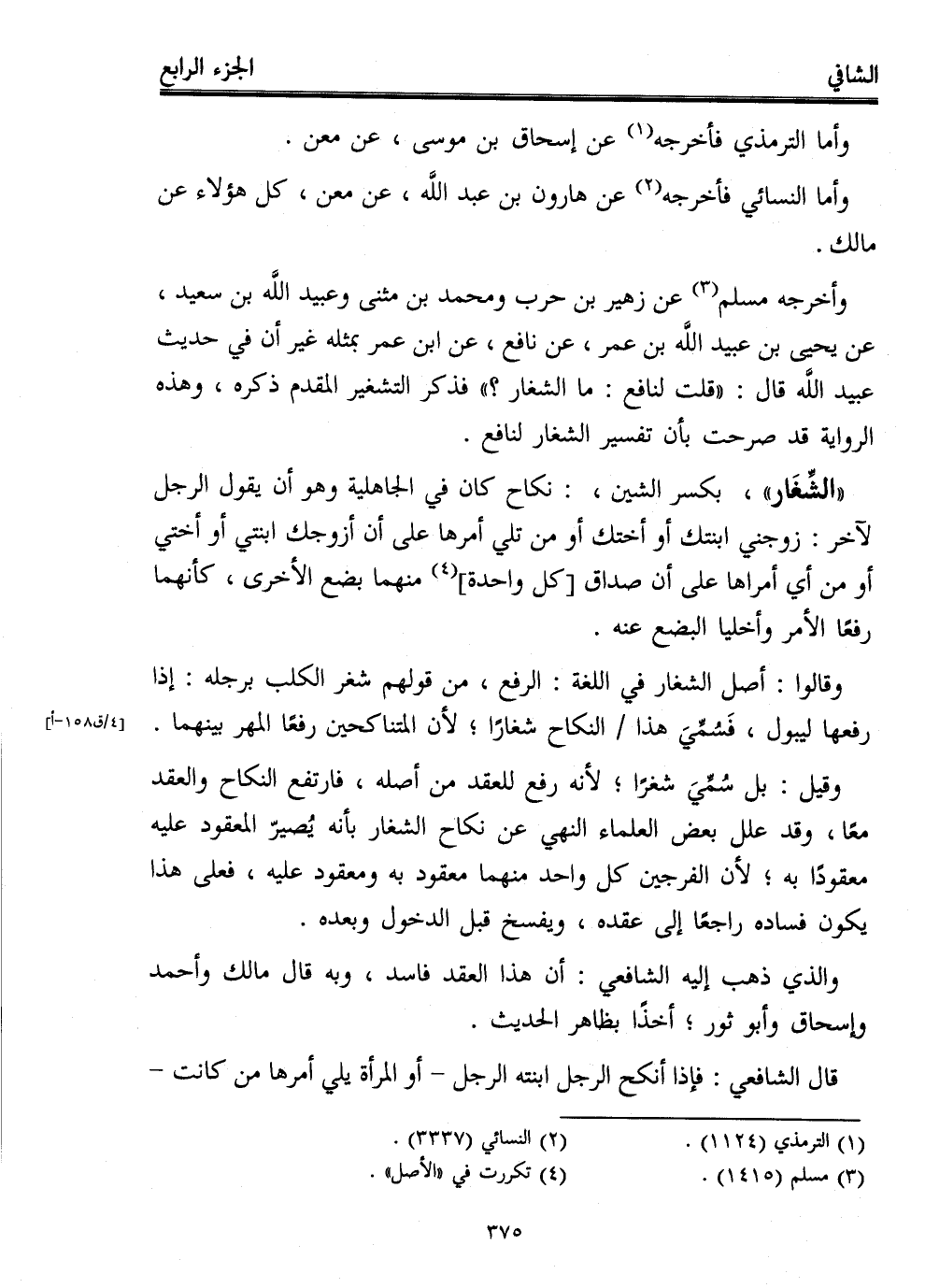 وقالوا: أصل الشغار في اللغة: الرفع، من قولهم شغر الكلب برجله: إذا رفعها ليبول، فَسُمِّيَ هذا النكاح شغارًا؛ لأن المتناكحين رفعًا المهر بينهما.