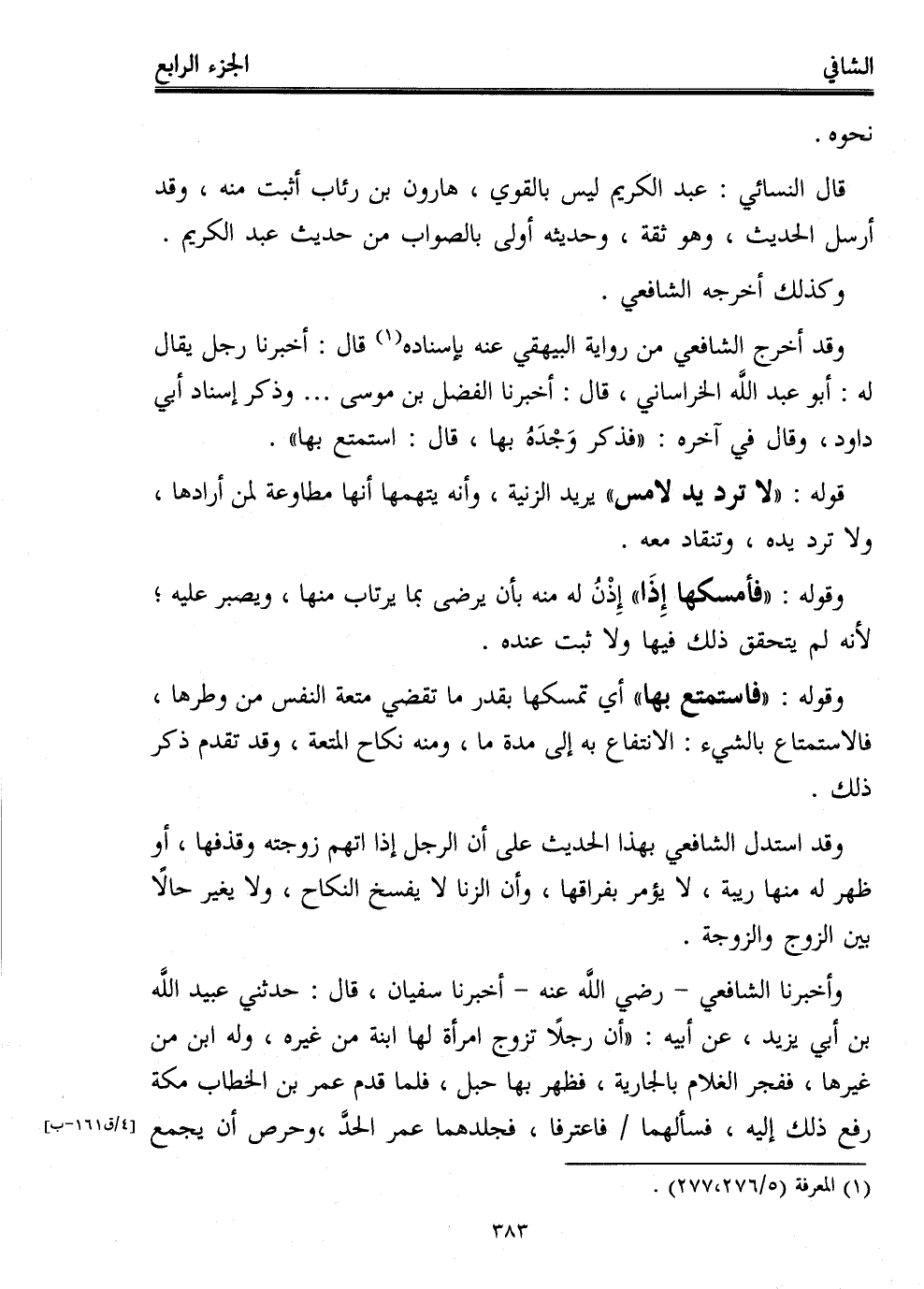 وقد أخرج الشافعي من رواية البيهقي عنه بإسناده (¬1) قال: أخبرنا رجل يقال له: أبو عبد الله الخراساني، قال: أخبرنا الفضل بن موسى ... وذكره إسناد أبي داود، وقال في آخره: "فذكر وَجْدَهُ بها، قال: استمتع بها".