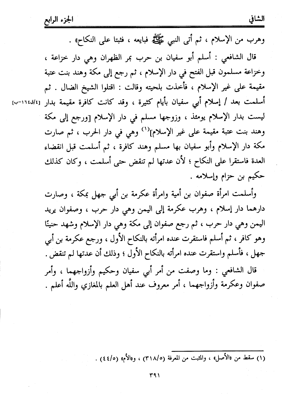 قال الشافعي: وما وصفت من أمر أبي سفيان وحكيم وأزواجهما، وأمر صفوان وعكرمة وأزواجهما، أمر معروف عند أهل العلم بالمغازي والله أعلم.