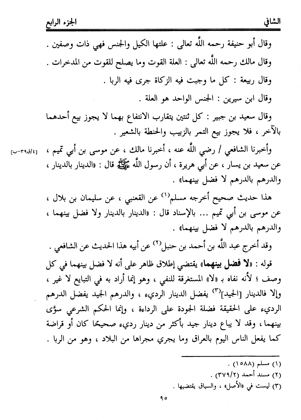 وأخبرنا الشافعي -رضي الله عنه-، أخبرنا مالك، عن موسى بن أبي تميم، عن سعيد بن يسار، عن أبي هريرة، أن رسول الله - صلى الله عليه وسلم - قال: "الدينار بالدينار، والدرهم بالدرهم لا فضل بينهما".