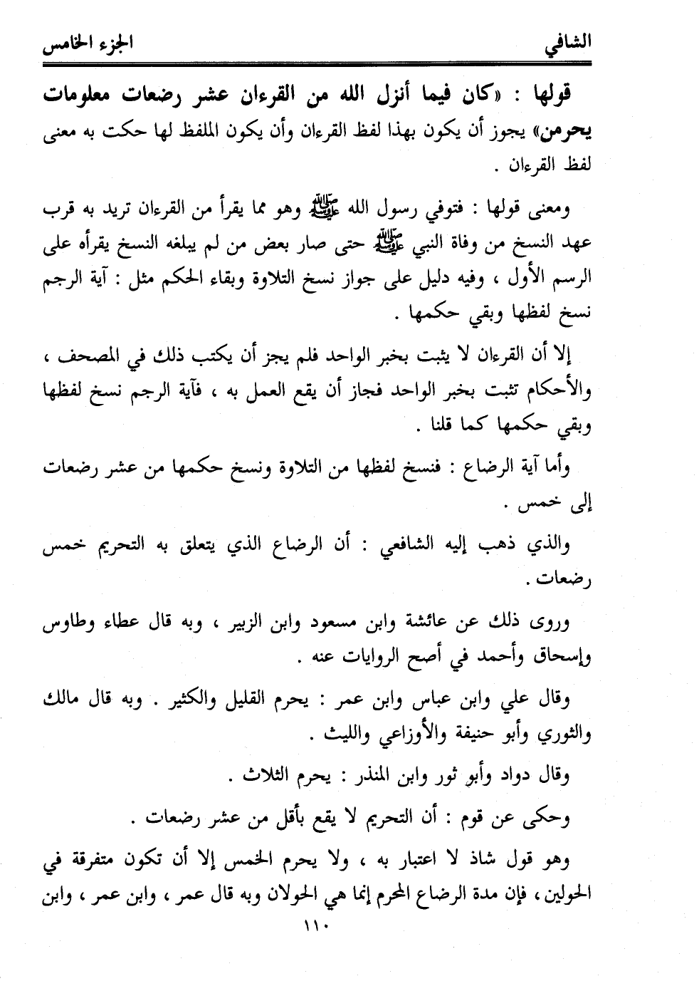 وأما آية الرضاع: فنسخ لفظها من التلاوة ونسخ حكمها من عشر رضعات إلى خمس.