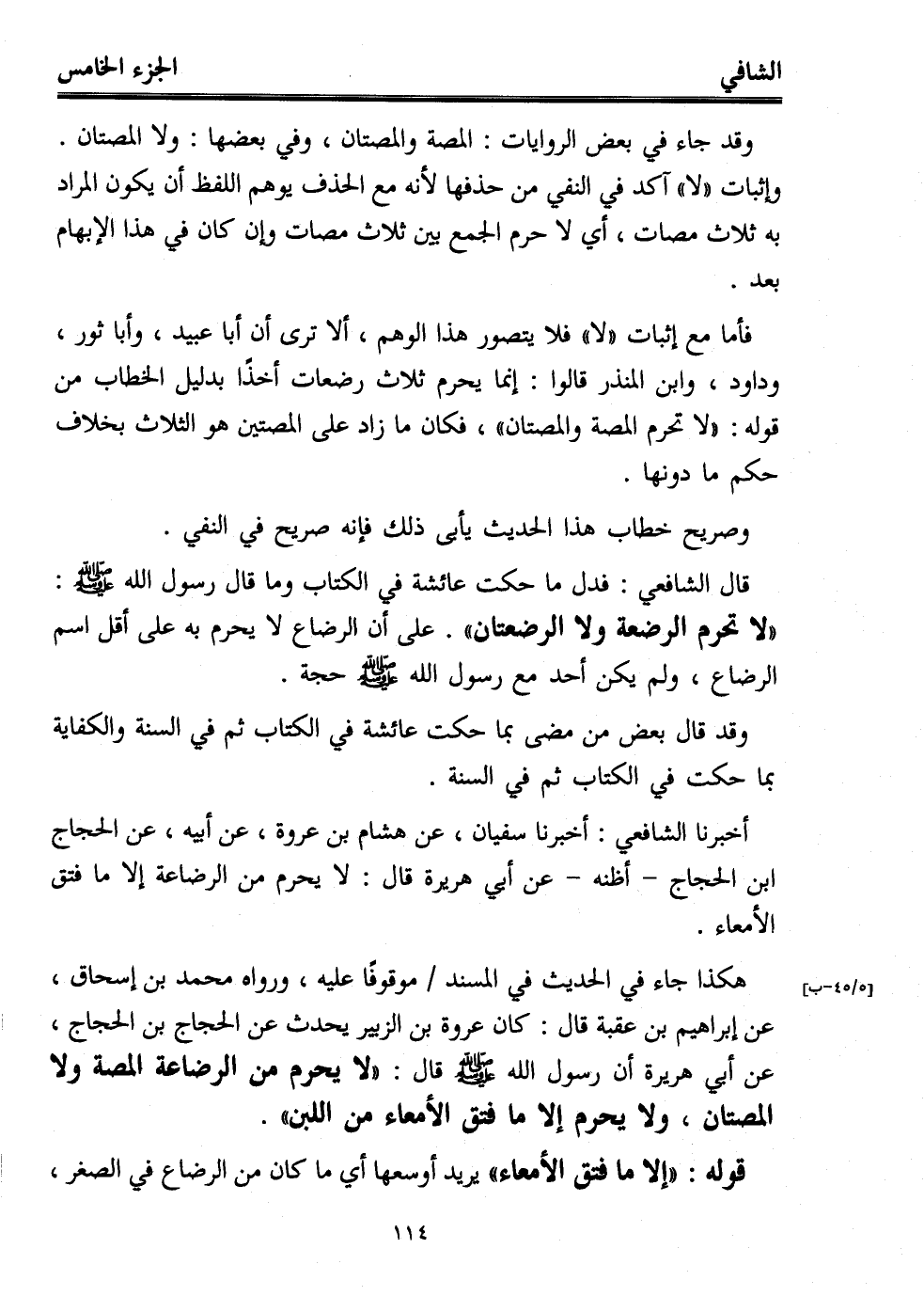 أخبرنا الشافعي: أخبرنا سفيان، عن هشام بن عروة، عن أبيه، عن الحجاج ابن الحجاج -أظنه- عن أبي هريرة قال: لا يحرم من الرضاعة إلا ما فتق الأمعاء.