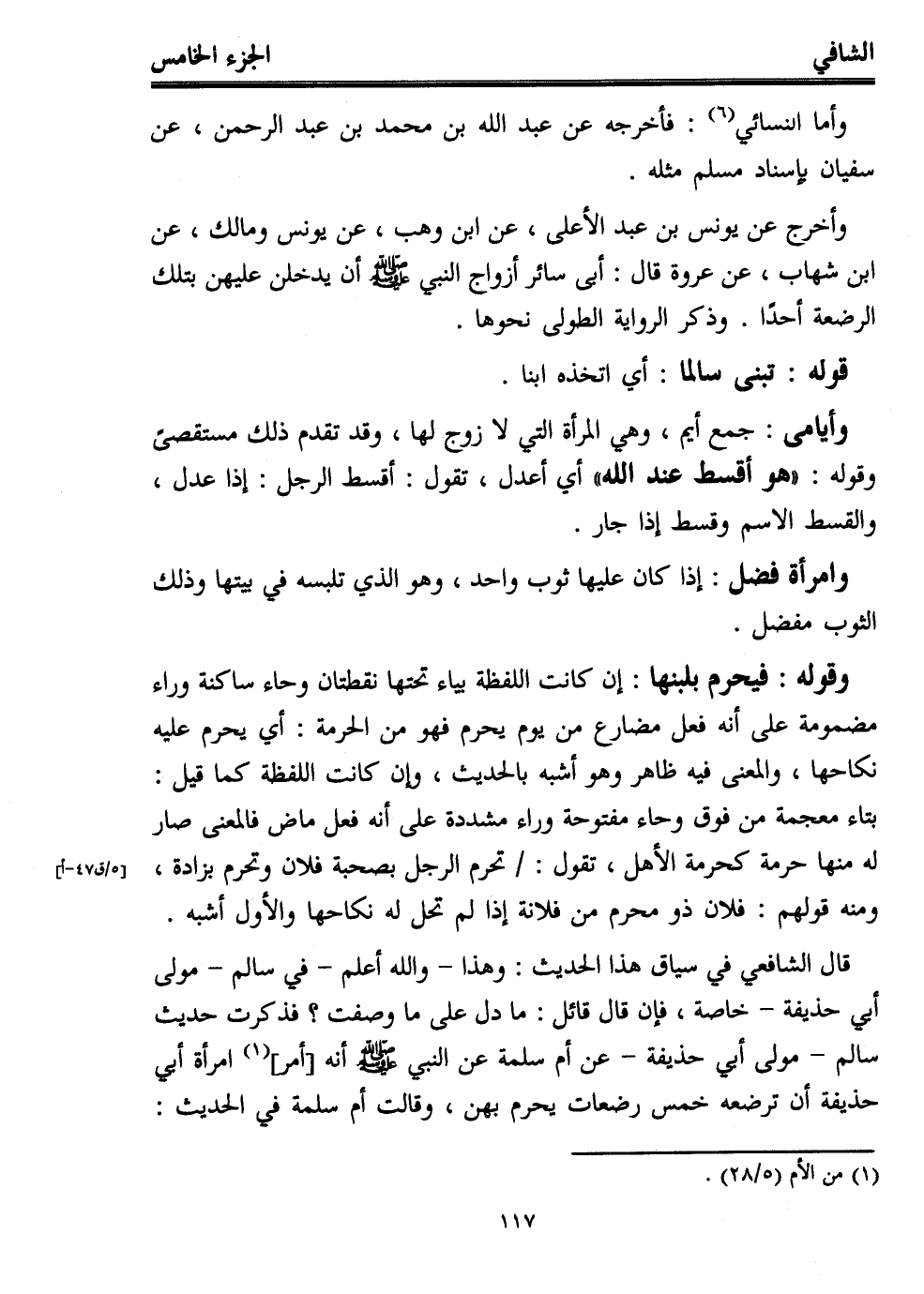 قال الشافعي في سياق هذا الحديث: وهذا -والله أعلم- في سالم -مولى أبي حذيفة- خاصة، فإن قال قائل: ما دل على ما وصفت؟ فذكرت حديث سالم -مولى أبي حذيفة- عن أم سلمة عن النبي - صلى الله عليه وسلم -[أمر] (¬2) امرأة أبي حذيفة أن ترضعه خمس رضعات يحرم بهن، وقالت أم سلمة في الحديث: