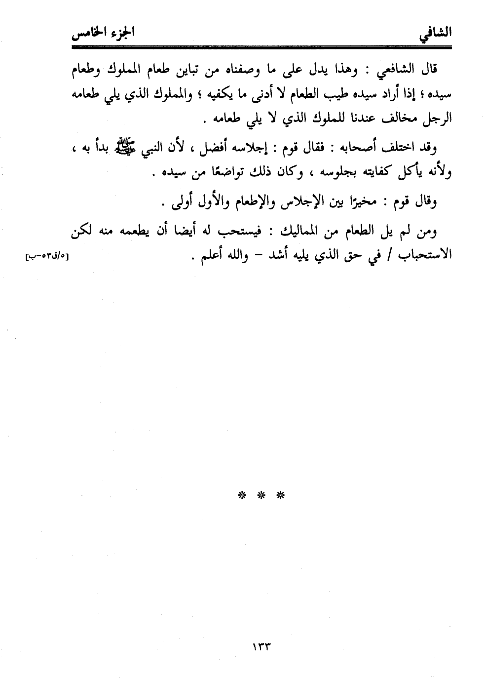 قال الشافعي: وهذا يدل على ما وصفناه من تباين طعام المملوك وطعام سيده؛ إذا أراد سيده طيب الطعام لا أدنى ما يكفيه؛ والمملوك الذي يلي طعامه الرجل مخالف عندنا للملوك الذي لا يلي طعامه.