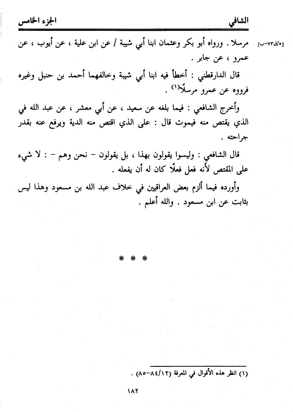 وأورده فيما ألزم بعض العراقيين في خلاف عبد الله بن مسعود وهذا ليس بثابت عن ابن مسعود. والله أعلم.