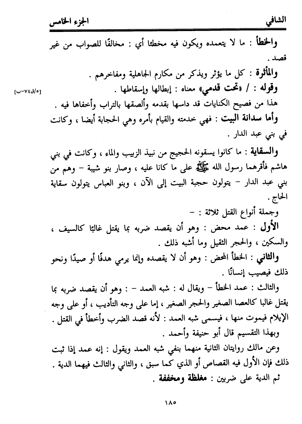 وعن مالك روايتان الثانية منهما بنفي شبه العمد ويقول: إنه عمد إذا ثبت ذلك فإن الأول فيه القصاص أو الذي كما سبق، والثاني والثالث فيهما الدية.