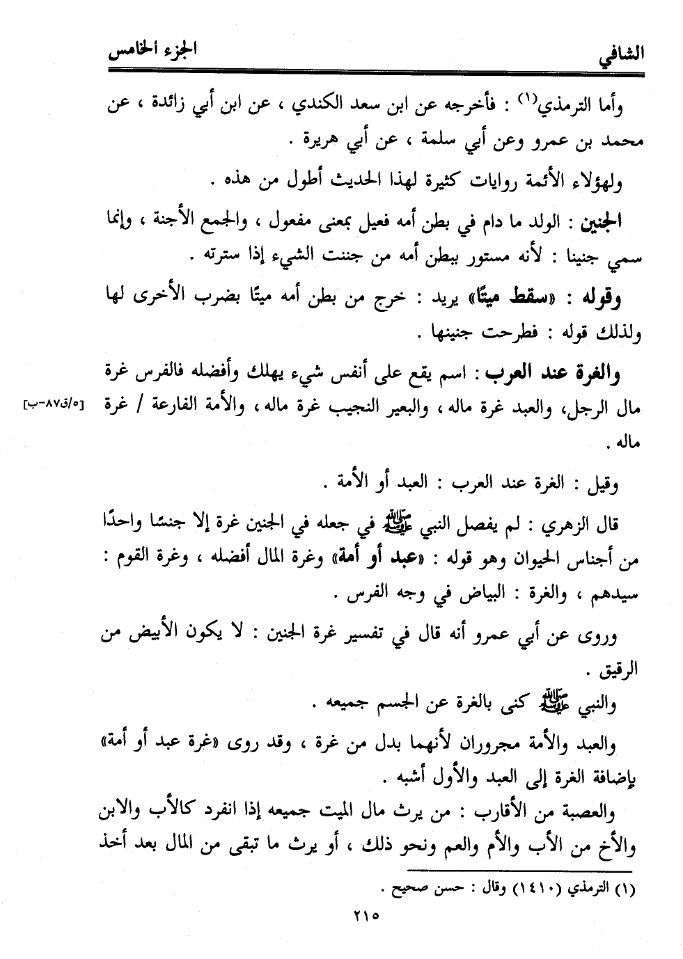 قال الزهري: لم يفصل النبي - صلى الله عليه وسلم - في جعله في الجنين غرة إلا جنسًا واحدًا من أجناس الحيوان وهو قوله: "عبد أو أمة" وغزة المال أفضله، وغزة القوم: سيدهم، والغرة: البياض في وجه الفرس.