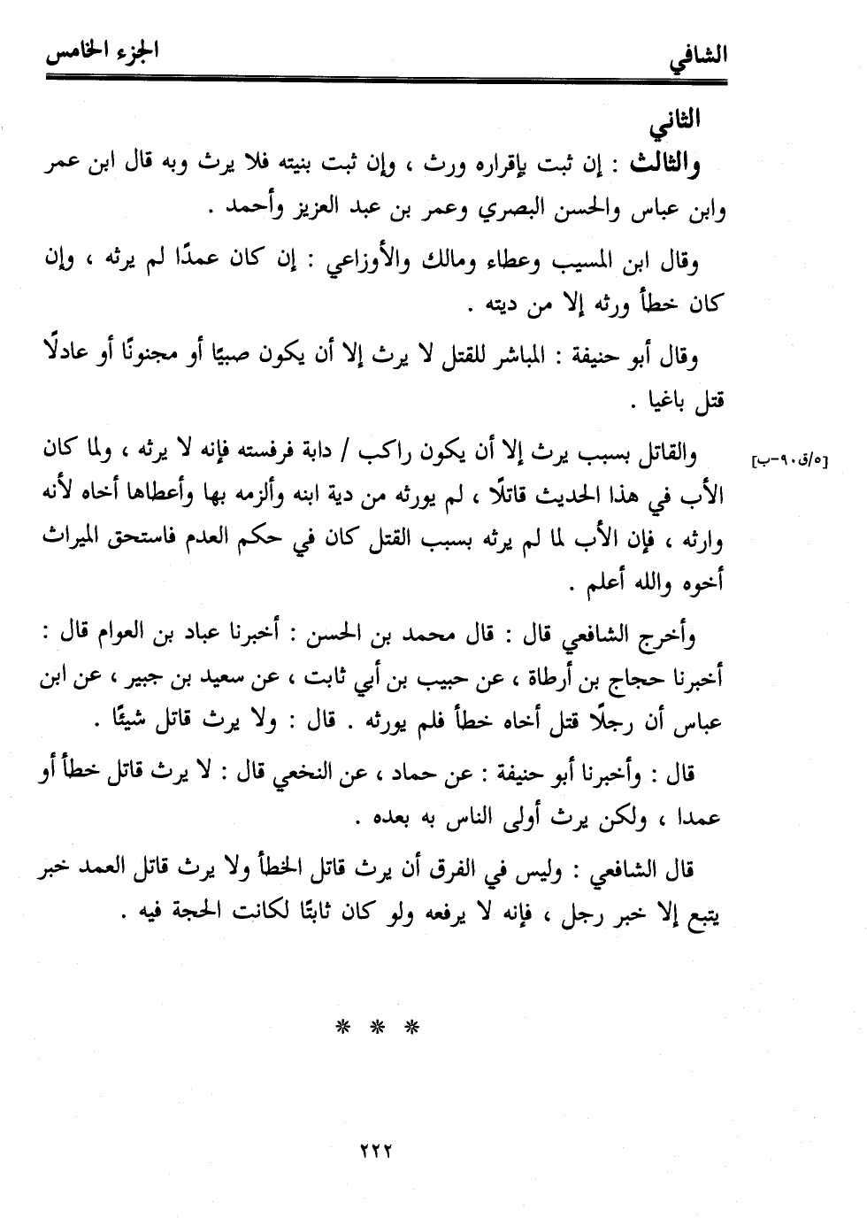 قال الشافعي: وليس في الفرق أن يرث قاتل الخطأ ولا يرث قاتل العمد خبر يتبع إلا خبر رجل، فإنه لا يرفعه ولو كان ثابتًا لكانت الحجة فيه.