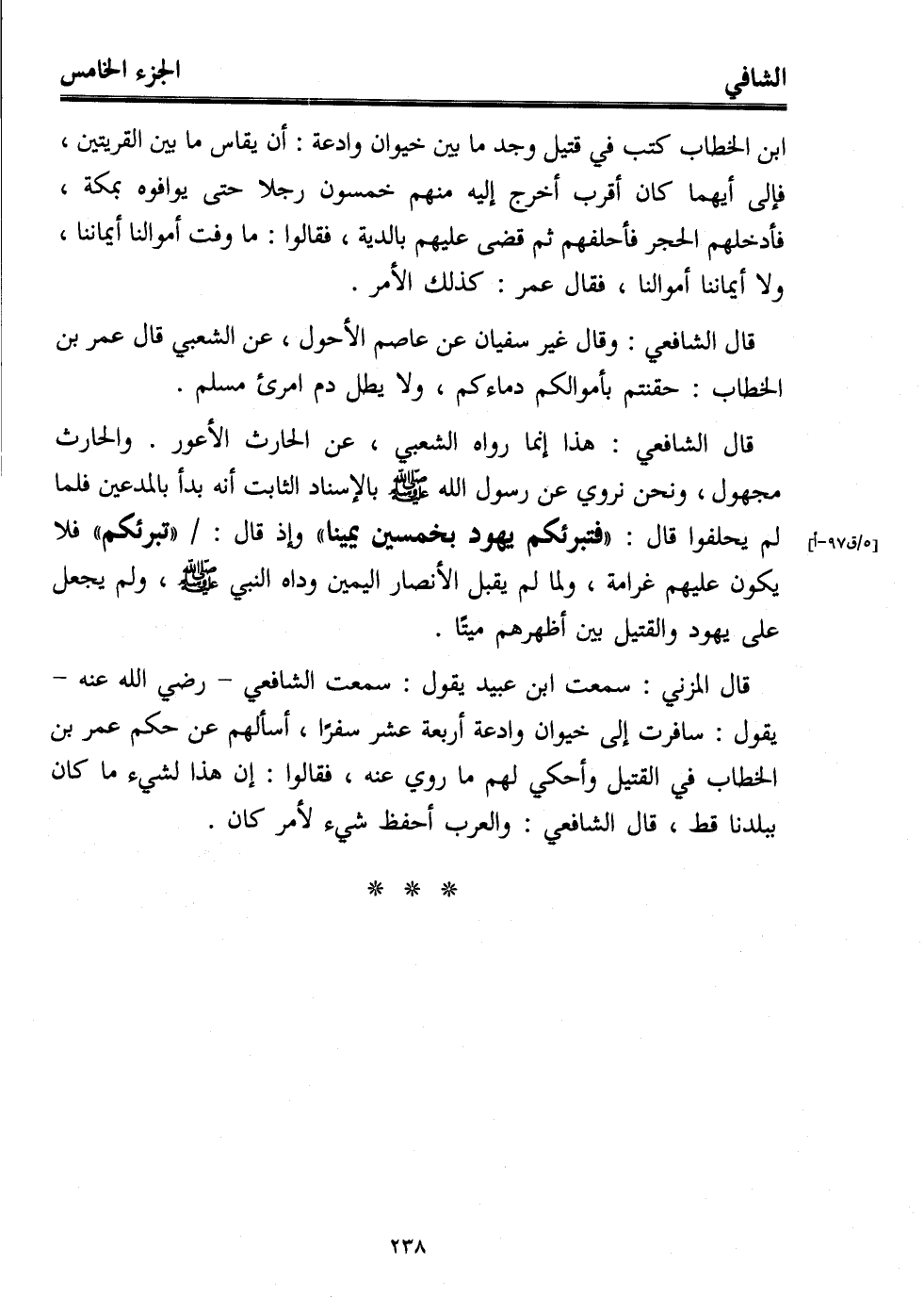قال الشافعي: وقال غير سفيان عن عاصم الأحول، عن الشعبي قال عمر بن الخطاب: حقنتم بأموالكم دماءكم، ولا يطل دم امرئ مسلم.