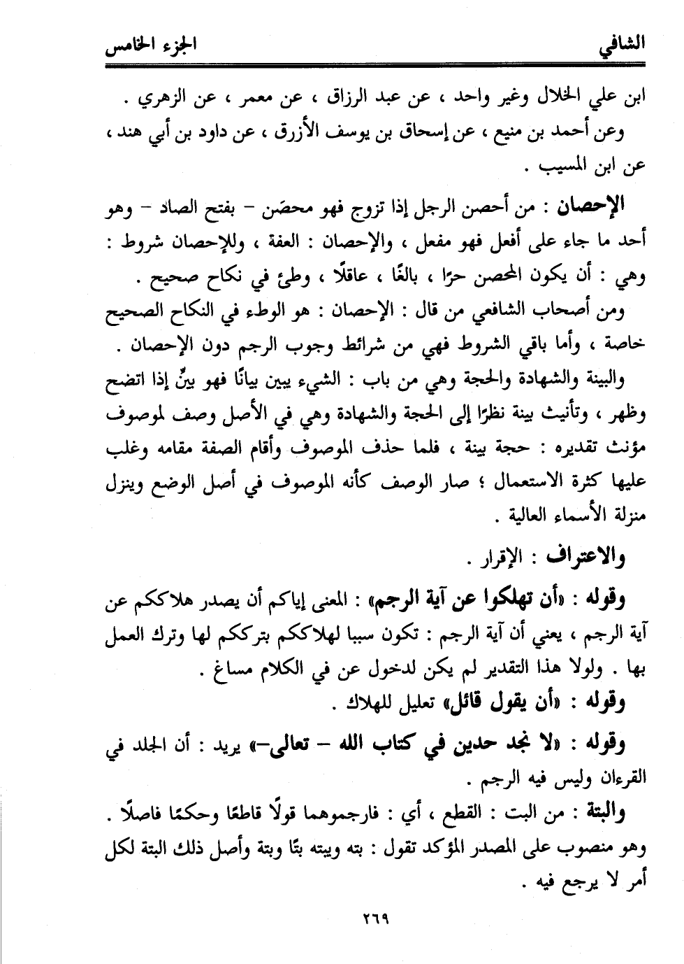 ومن أصحاب الشافعي من قال: الإحصان: هو الوطء في النكاح الصحيح خاصة، وأما باقي الشروط فهي من شرائط وجوب الرجم دون الإحصان.