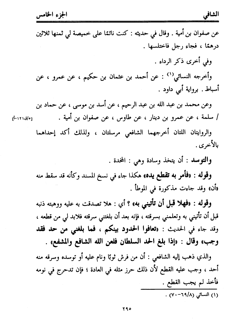عن صفوان بن أمية. وقال في حديثه: كنت نائمًا على خميصة لي ثمنها ثلاثين درهمًا، فجاء رجل فاختلسها.