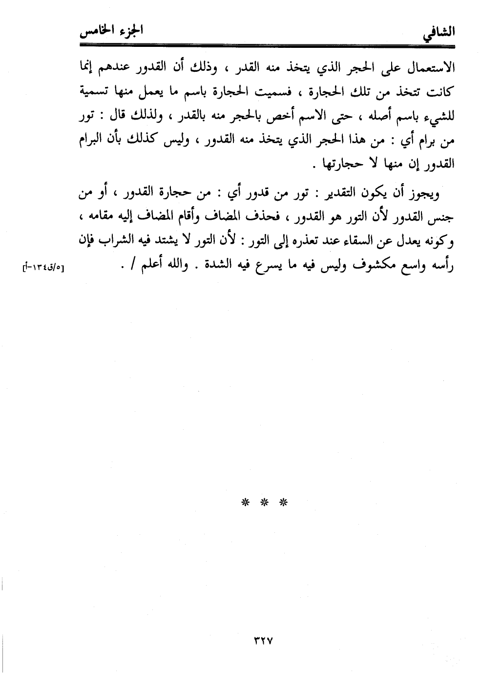 ويجوز أن يكون التقدير: تور من قدور أي: من حجارة القدور، أو من جنس القدور لأن التور هو القدور، فحذف المضاف وأقام المضاف إليه مقامه، وكونه يعدل عن السقاء عند تعذره إلى التور: لأن التور لا يشتد فيه الشراب فإن رأسه واسع مكشوف وليس فيه ما يسرع فيه الشدة. والله أعلم.