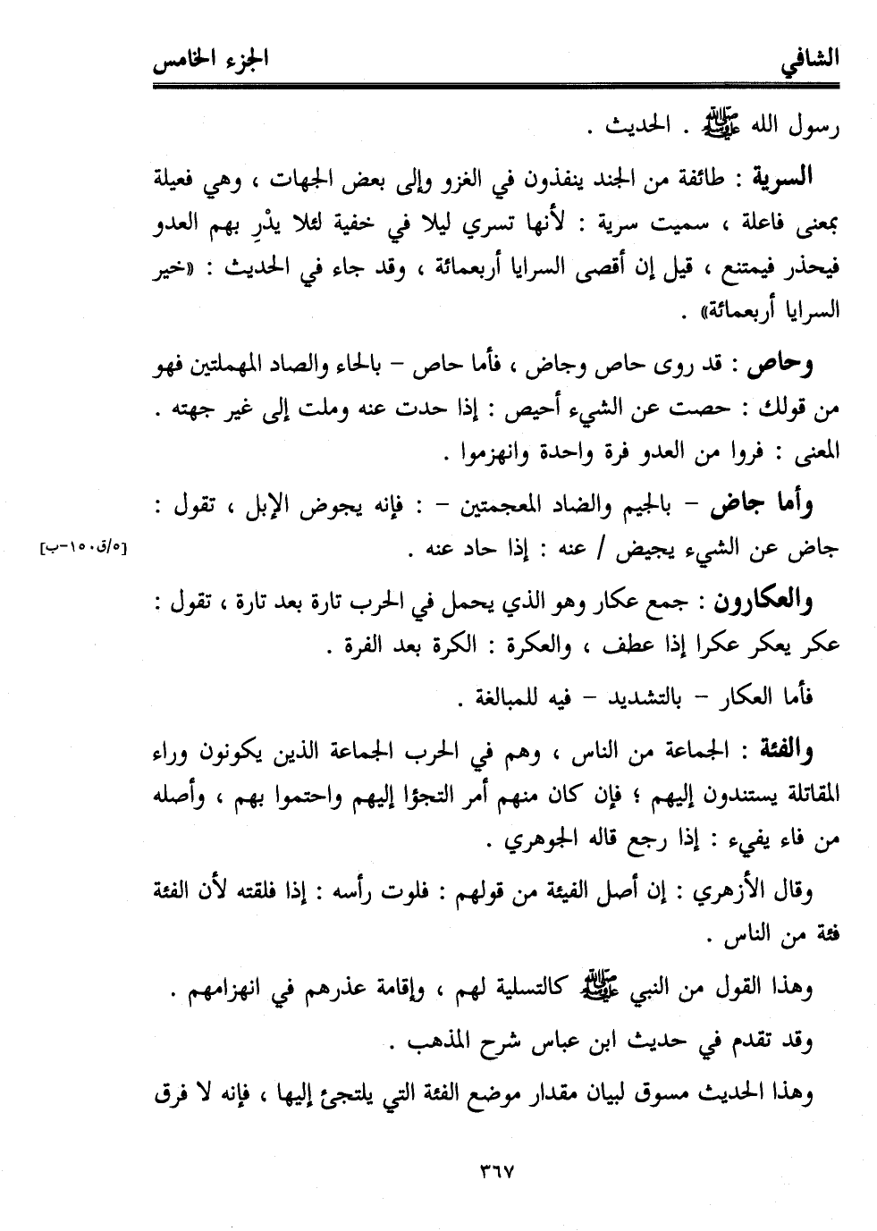 وقال الأزهري: إن أصل الفيئة من قولهم: فلوت رأسه: إذا فلقته لأن الفئة فئة من الناس.