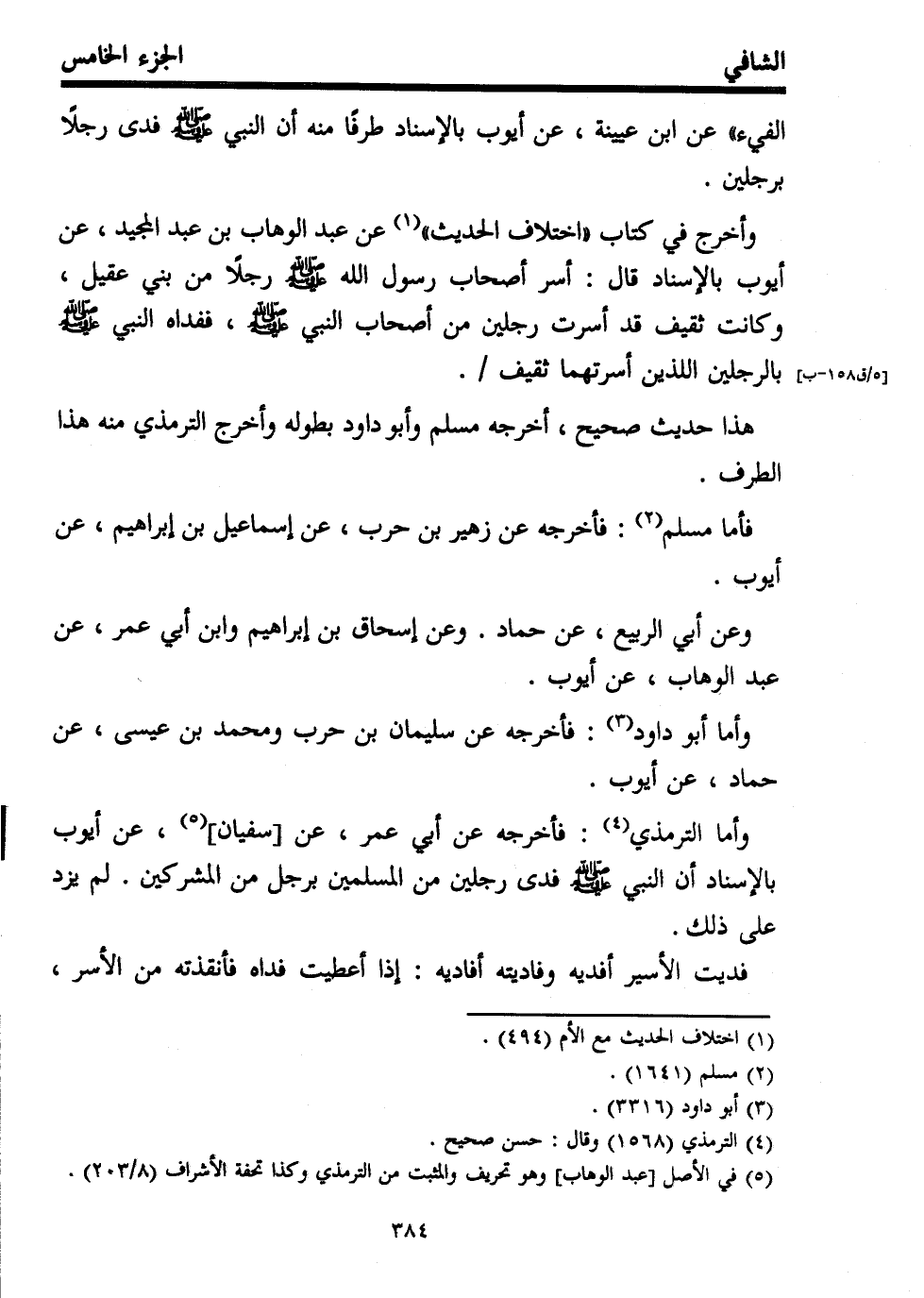 وأخرج في كتاب "اختلاف الحديث" (¬1) عن عبد الوهاب بن عبد المجيد، عن أيوب بالإسناد قال: أسر أصحاب رسول الله - صلى الله عليه وسلم - رجلاً من بني عقيل، وكانت ثقيف قد أسرت رجلين من أصحاب النبي - صلى الله عليه وسلم -، ففداه النبي - صلى الله عليه وسلم - بالرجلين اللذين أسرتهما ثقيف.
