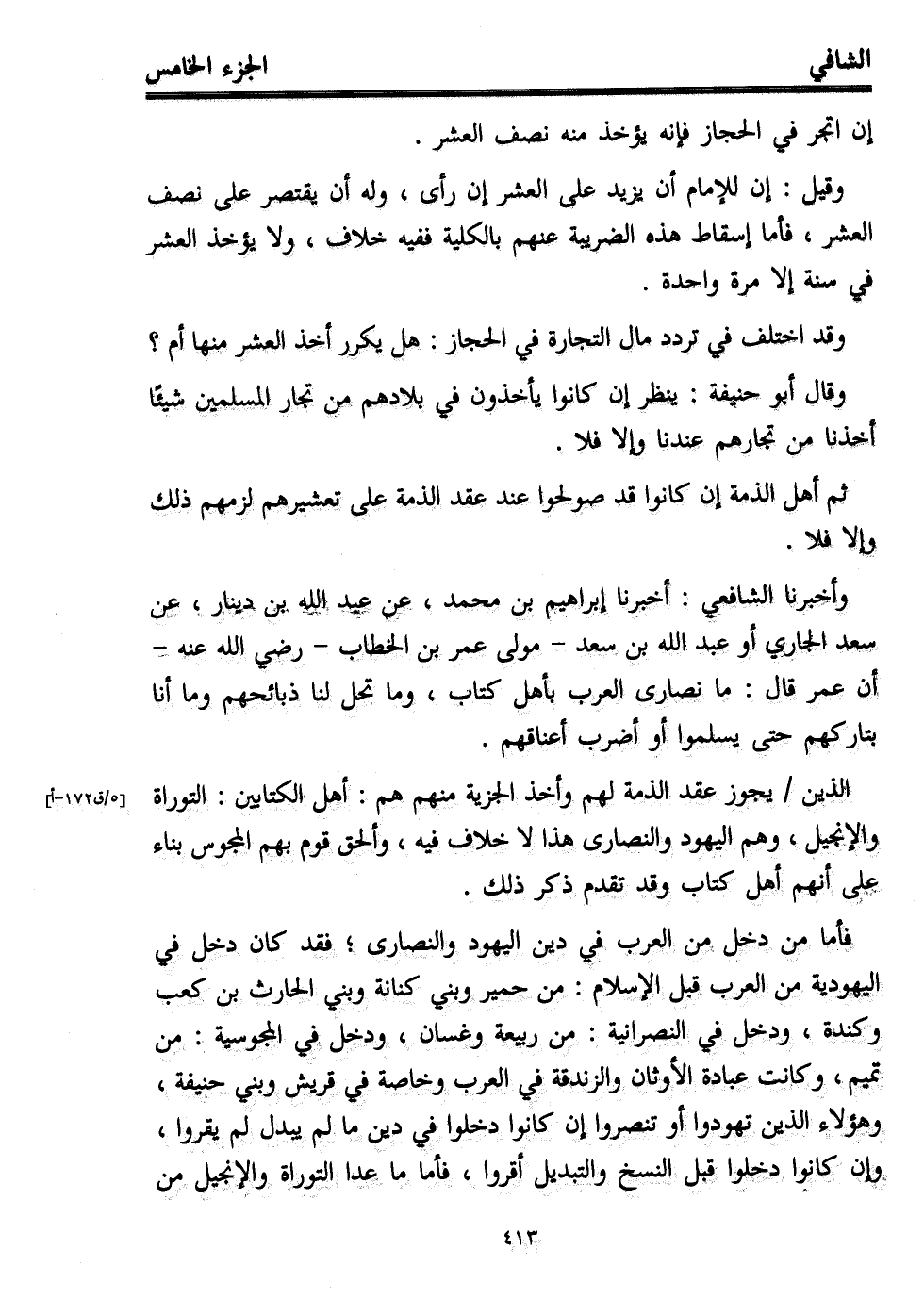 فأما من دخل من العرب في دين اليهود والنصارى؛ فقد كان دخل في اليهودية من العرب قبل الإسلام: من حمير وبني كنانة وبني الحارث بن كعب وكندة، ودخل في النصرانية: من ربيعة وغسان، ودخل في المجوسية: من تميم، وكانت عبادة الأوثان والزندفة في العرب وخاصة في قريش وبني حنيفة، وهؤلاء الذين تهودوا أو تنصروا إن كانوا دخلوا في دين ما لم يبدل لم يقروا، وإن كانوا دخلوا قبل النسخ والتبديل أقروا، فأما ما عدا التوراة والإنجيل من