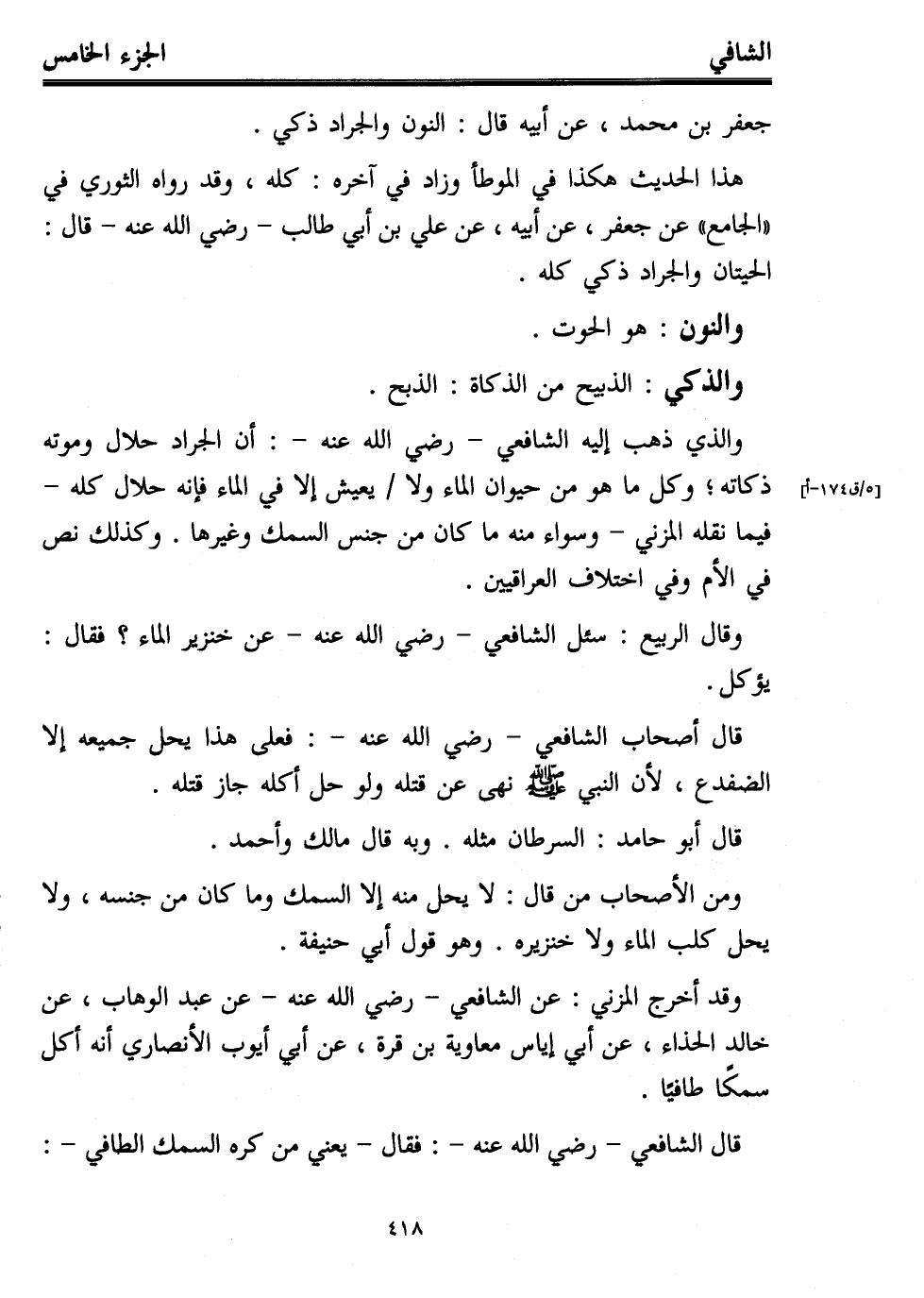 جعفر بن محمد، عن أبيه قال: النون والجراد ذكي.