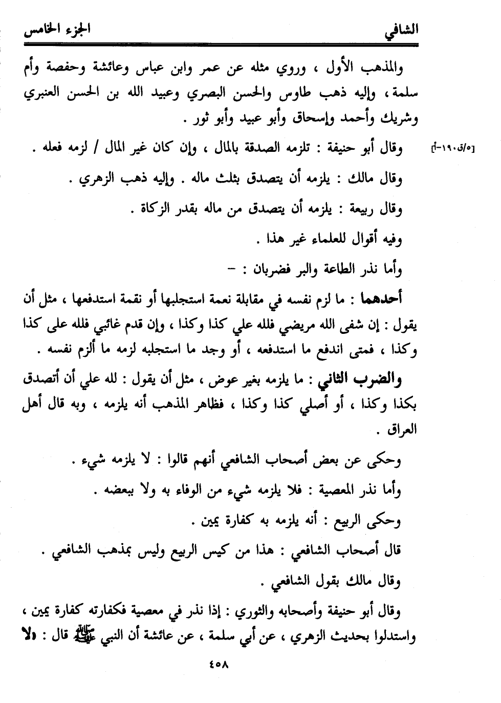وقال مالك: يلزمه أن يتصدق بثلث ماله. وإليه ذهب الزهري.