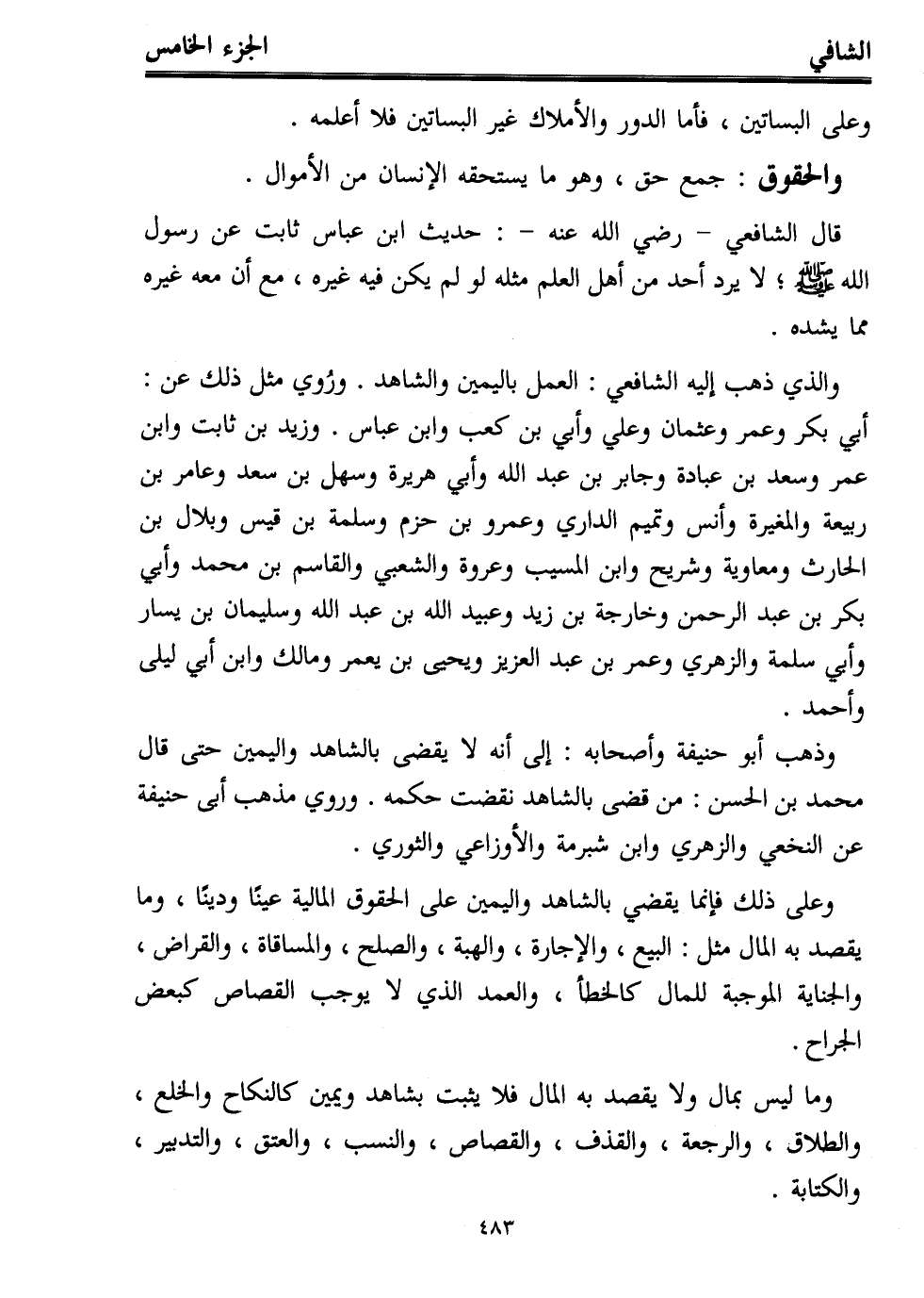 قال الشافعي -رضي الله عنه-: حديث ابن عباس ثابت عن رسول الله - صلى الله عليه وسلم -؛ لا يرد أحد من أهل العلم مثله لو لم يكن فيه غيره، مع أن معه غيره مما يشده.