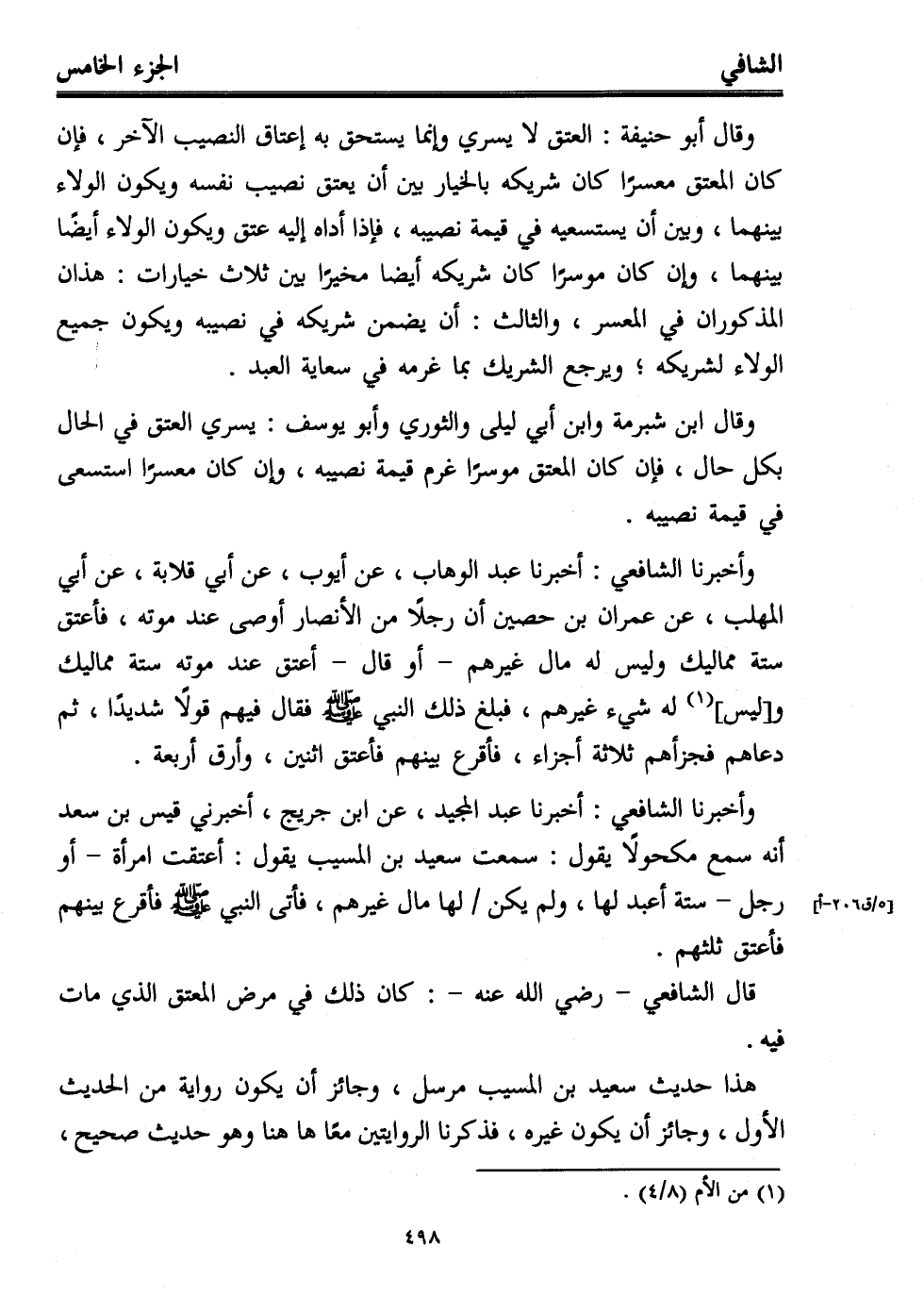 وأخبرنا الشافعي: أخبرنا عبد الوهاب، عن أيوب، عن أبي قلابة، عن أبي المهلب، عن عمران بن حصين أن رجلاً من الأنصار أوصى عند موته، فأعتق ستة مماليك وليس له مال غيرهم -أو قال- أعتق عند موته ستة مماليك و [ليس] (¬1) له شيء غيرهم، فبلغ ذلك النبي - صلى الله عليه وسلم - فقال فيهم قولًا شديدًا، ثم دعاهم فجزأهم ثلاثة أجزاء، فأقرع بينهم فأعتق اثنين، وأرق أربعة.