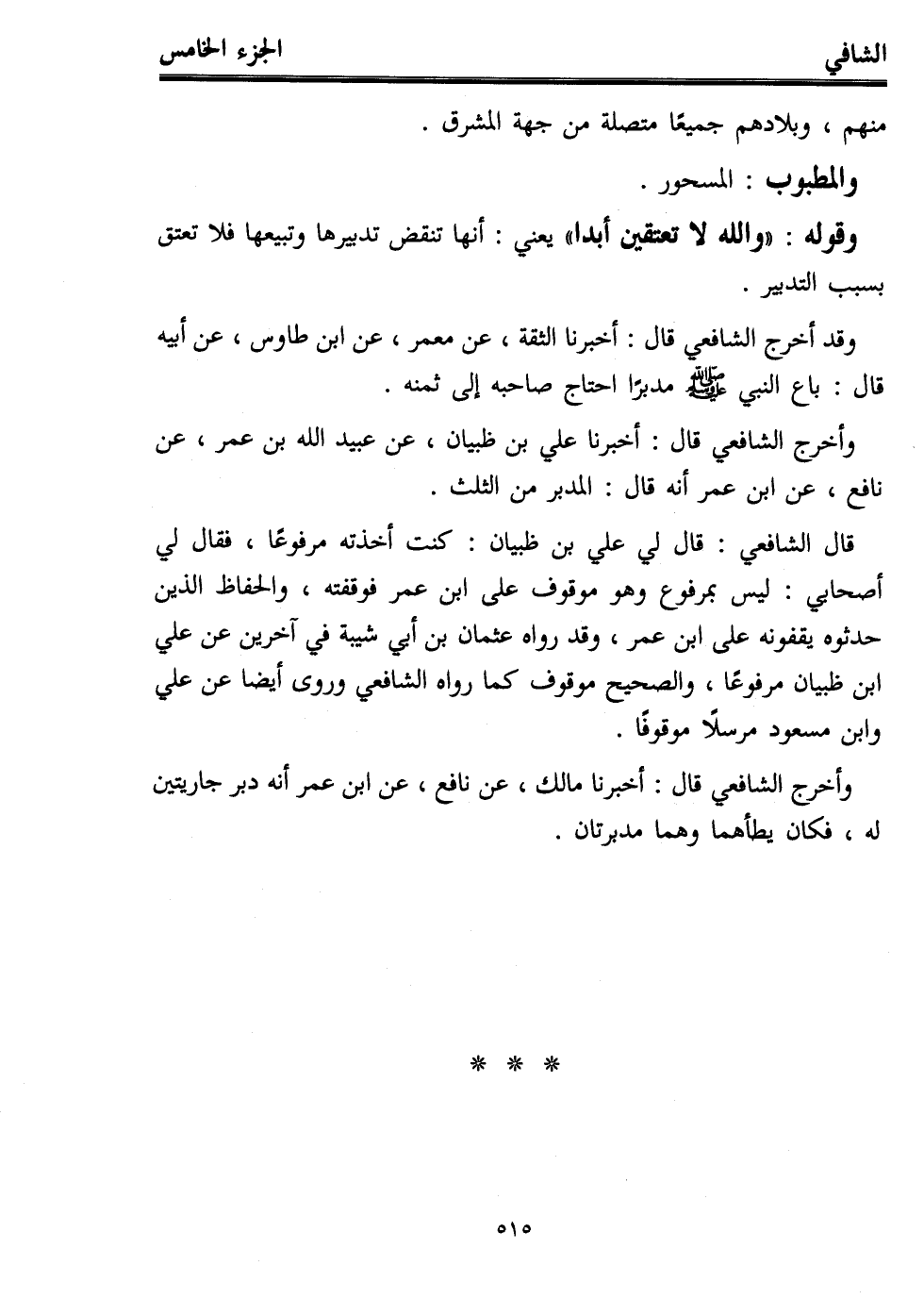 وأخرج الشافعي قال: أخبرنا علي بن ظبيان، عن عبيد الله بن عمر، عن نافع، عن ابن عمر أنه قال: المدبر من الثلث.