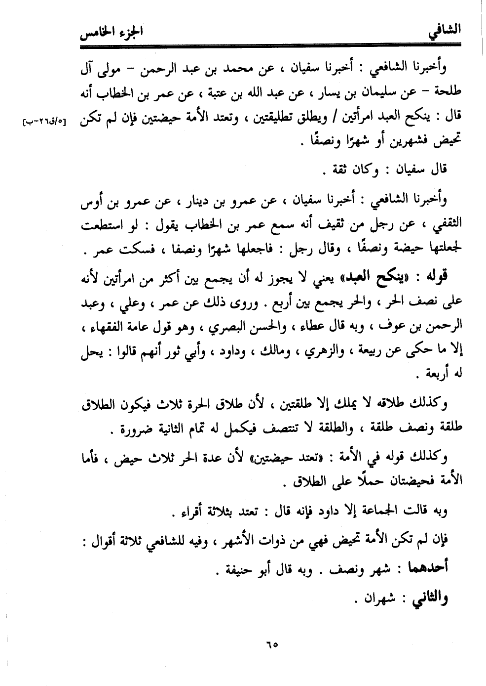 وأخبرنا الشافعي: أخبرنا سفيان، عن عمرو بن دينار، عن عمرو بن أوس الثقفي، عن رجل من ثقيف أنه سمع عمر بن الخطاب يقول: لو استطعت لجعلتها حيضة ونصفًا، وقال رجل: فاجعلها شهرًا ونصفًا، فسكت عمر.