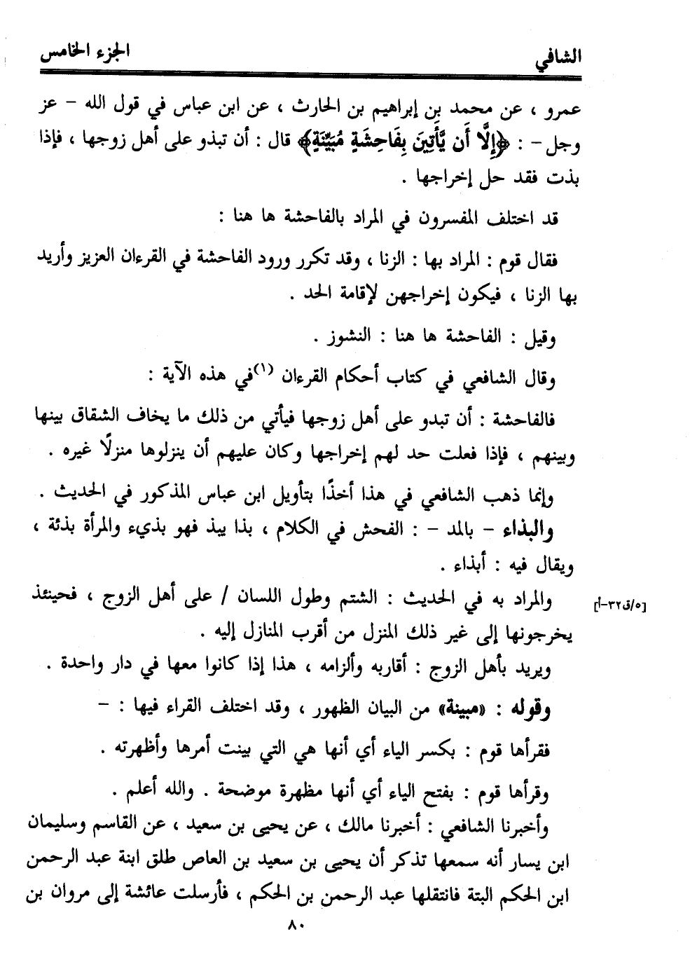 عمرو، عن محمد بن إبراهيم بن الحارث، عن ابن عباس في قول الله -عز وجل-: {إِلَّا أَنْ يَأْتِينَ بِفَاحِشَةٍ مُبَيِّنَةٍ} قال: أن تبذو على أهل زوجها، فإذا بذت فقد حل إخراجها.