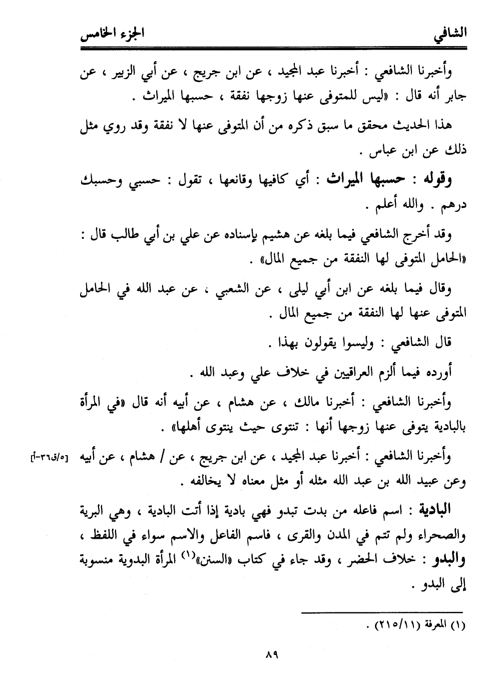 وأخبرنا الشافعي: أخبرنا عبد المجيد، عن ابن جريج، عن أبي الزبير، عن جابر أنه قال: "ليس للمتوفى عنها زوجها نفقة، حسبها الميراث.