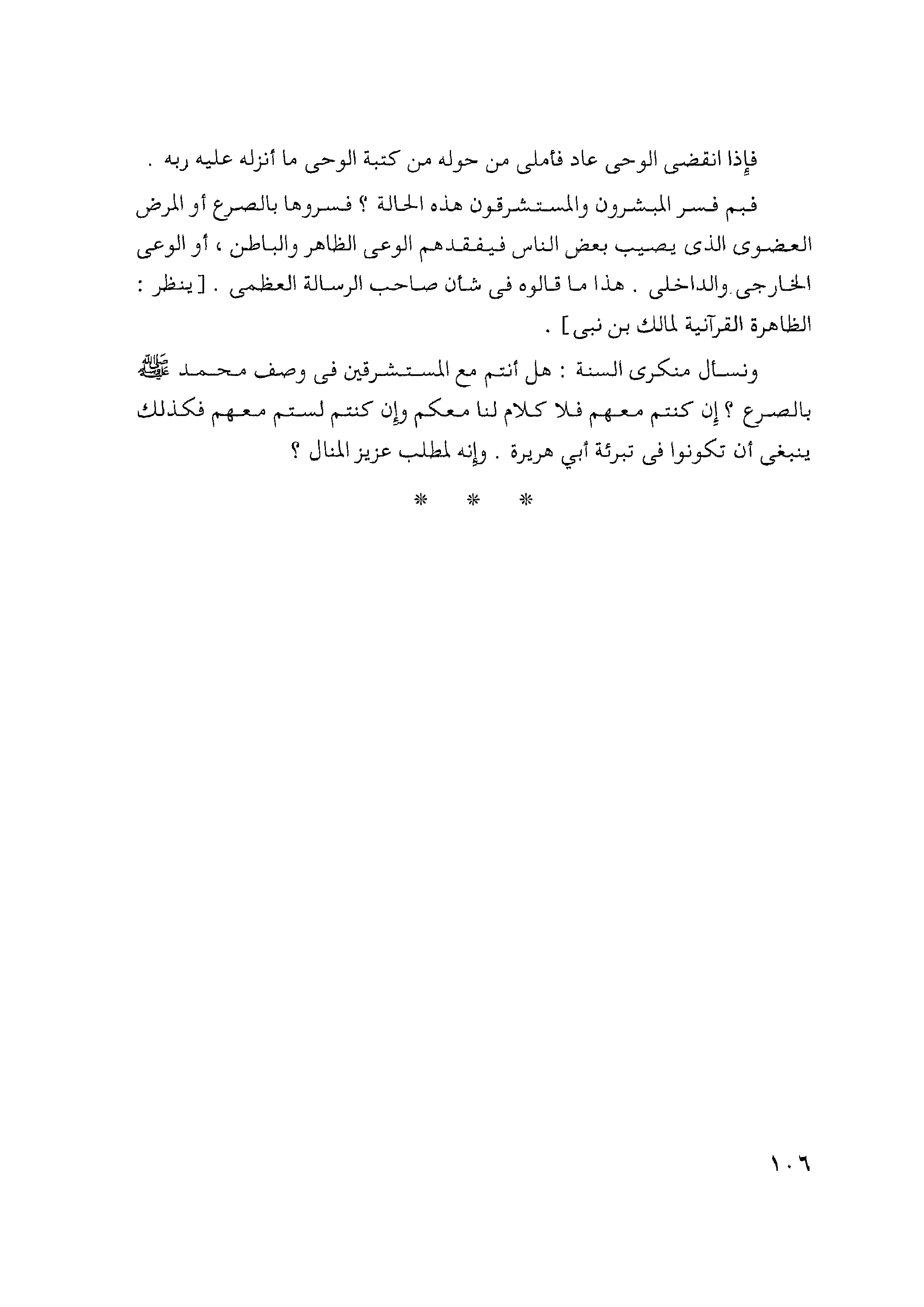 ونسأل منكري السنة: هل أنتم مع المستشرقون في وصف محمد - صلى الله عليه وسلم - بالصرع؟ إن كنتم معهم فلا كلام لنا معكم وإن كنتم لستم معهم فكذلك ينبغي أن تكونوا في تبرئة أبي هريرة. وإنه لمطلب عزيز المنال؟