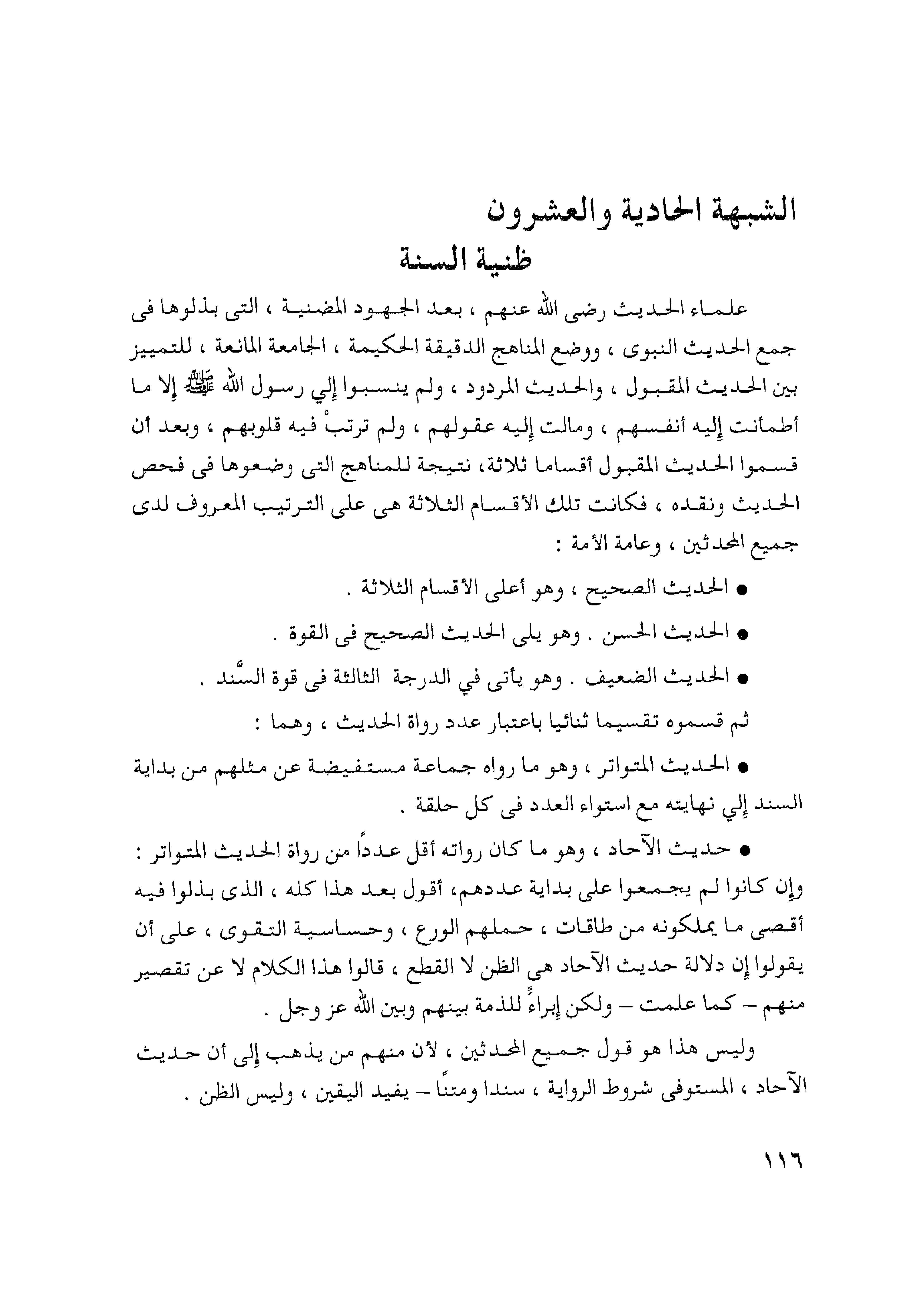 الشبهة الحادية والعشرون ظنية السنة
