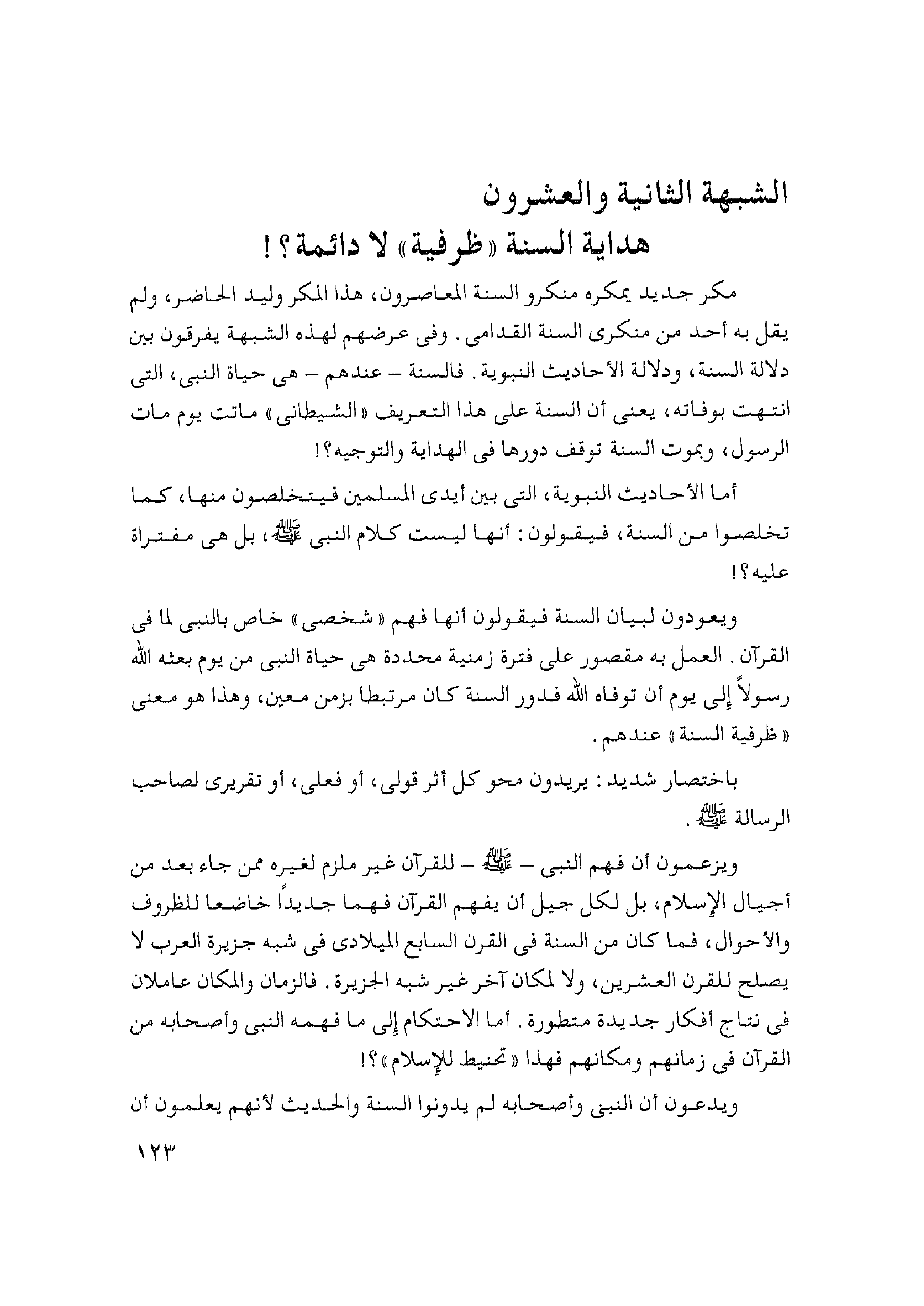 الشبهة الثانية والعشرون هداية السنة "ظرفية" لا دائمة؟!