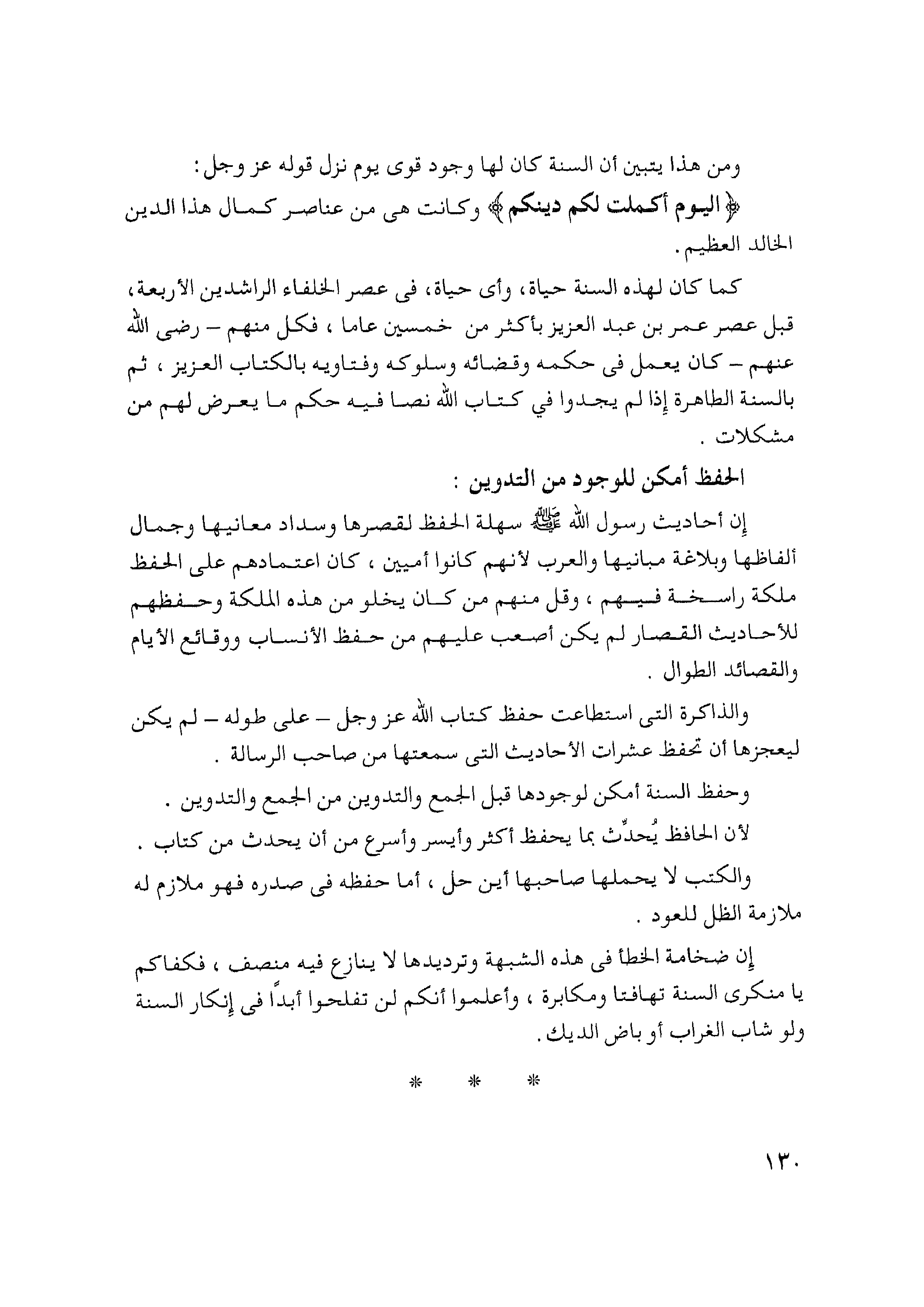 وحفظ السنة أمكن لوجودها قبل الجمع والتدوين من الجمع والتدوين.