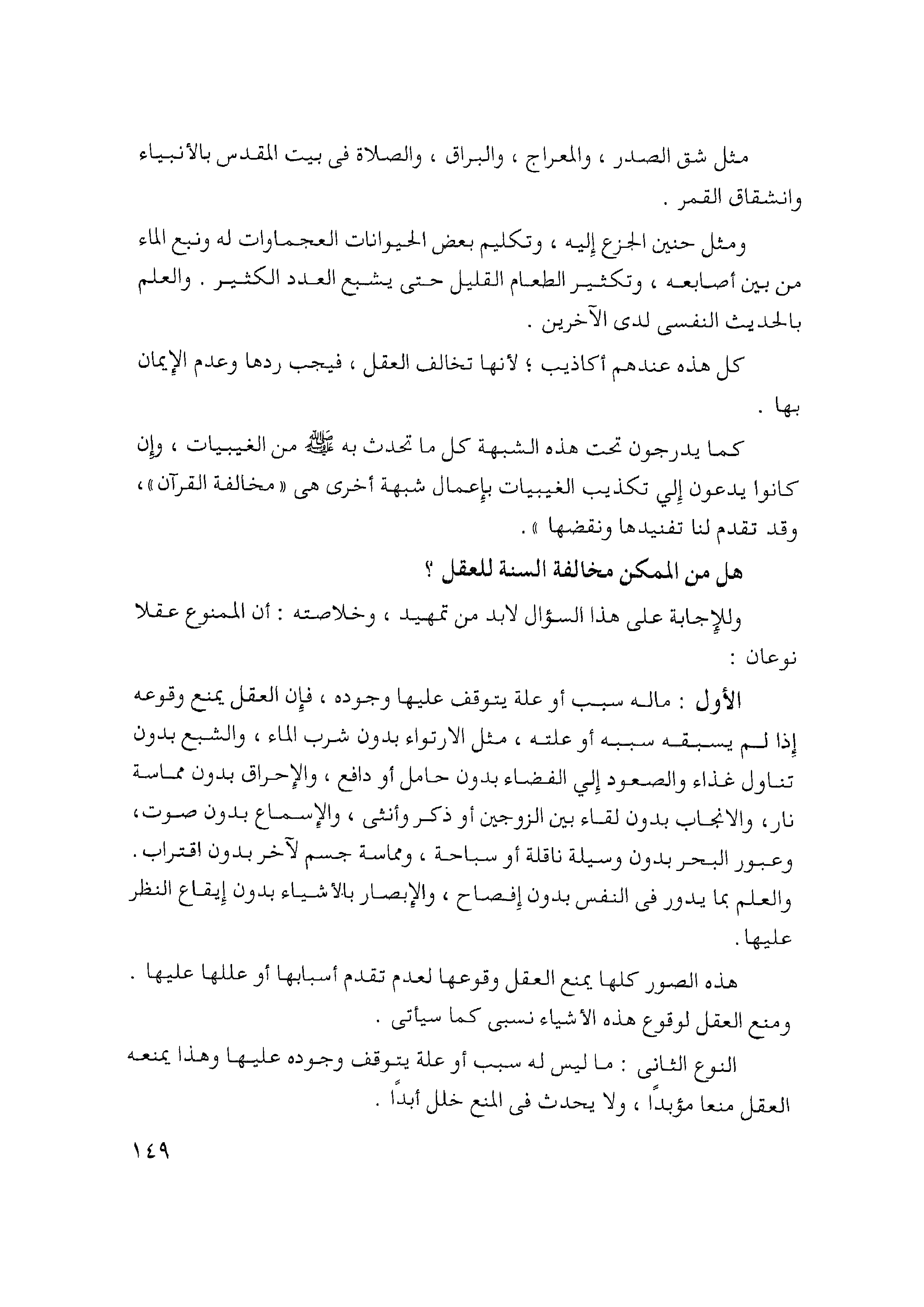 النوع الثاني: ما ليس له سبب أو علة بتوقف وجوده عليها وهذا يمنعه العقل منعاً مؤبداً، ولا يحدث في المنع خلل أبداً.