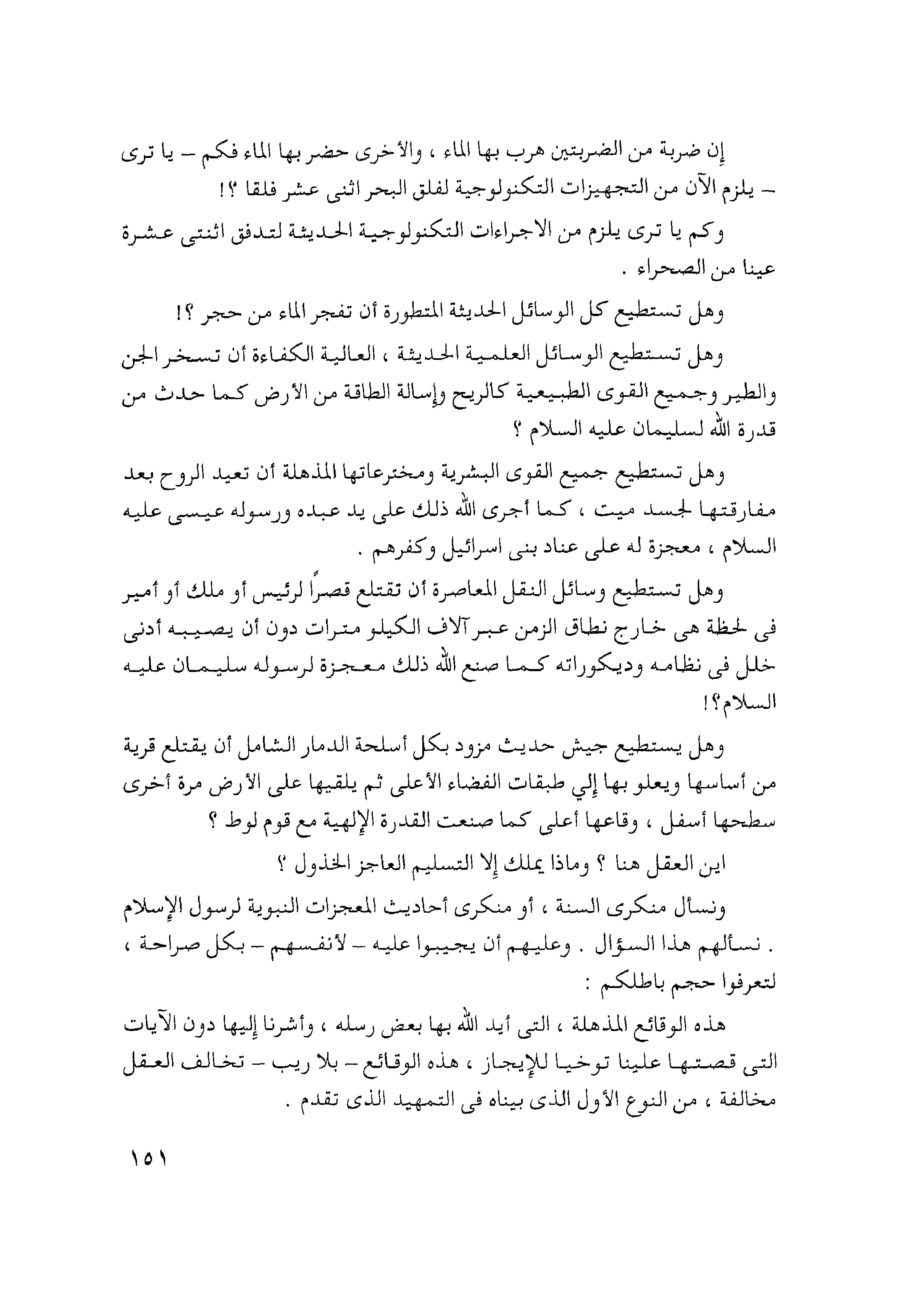 وهلا يستطيع جيش حديث مزود بكل أسلحة الدمار الشامل أن يقتلع قرية من أساسها ويعلو بها إلى طبقات الفضاء الأعلى ثم يلقيها على الأرض مرة أخرى سطحها أسفل، وقاعها أعلى كما صنعت القدرة الإلهية مع قوم لوط؟