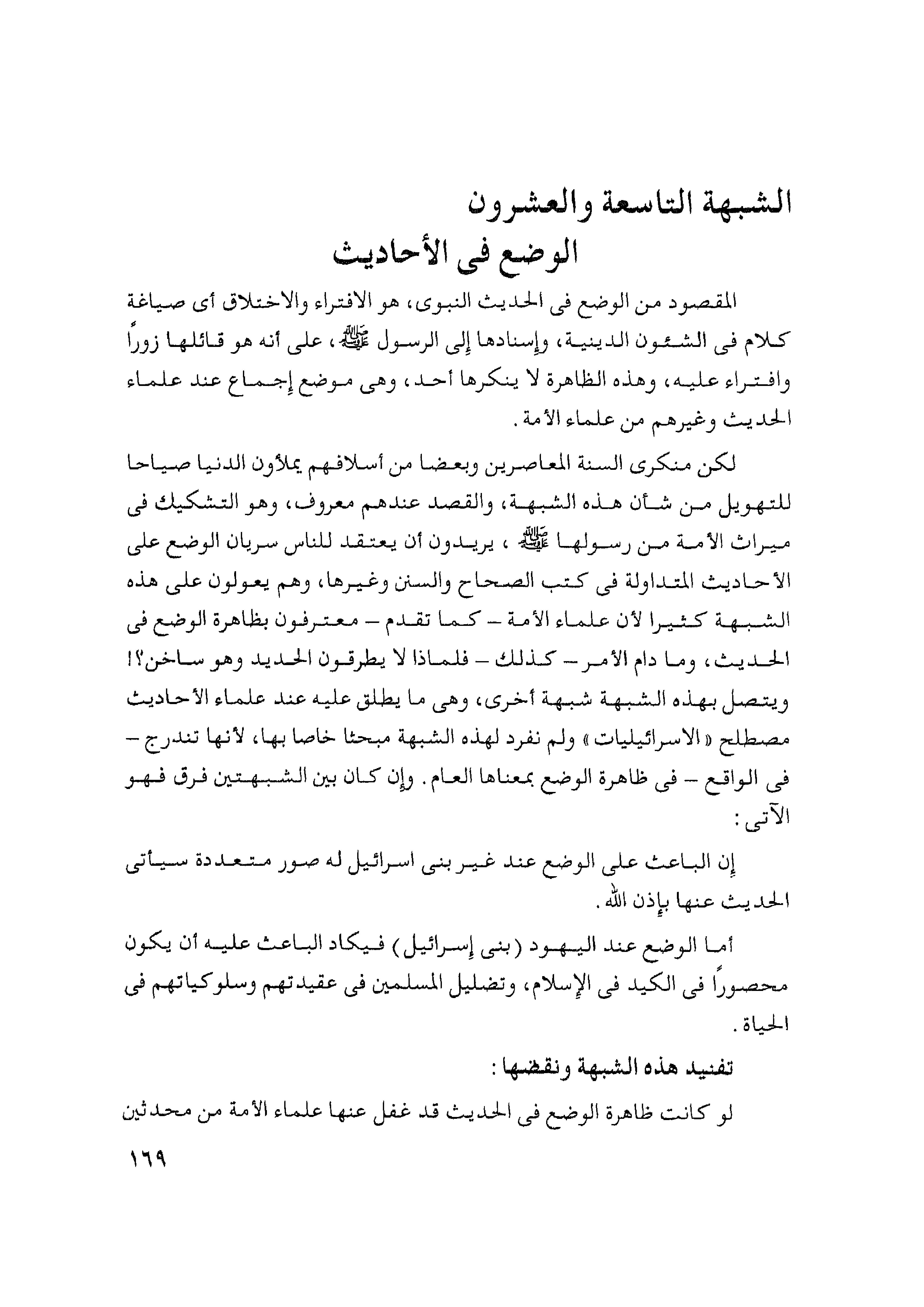 الشبهة التاسعة والعشرون الوضع في الأحاديث