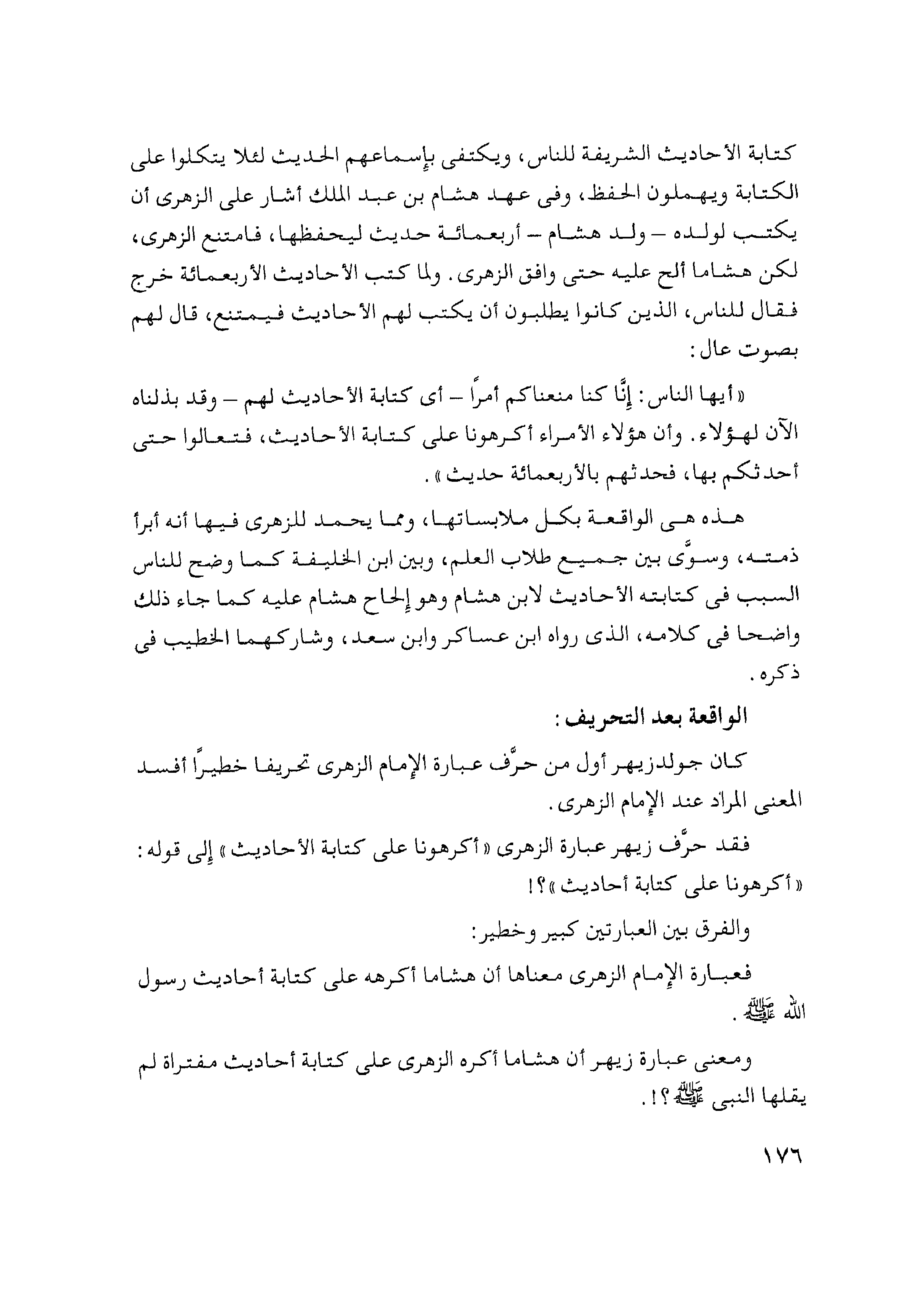 كان جولدزيهر أول من حرَّف عبارة الإمام الزهرى تحريفاً خطيراً أفسد المعنى المراد عند الإمام الزهرى.
