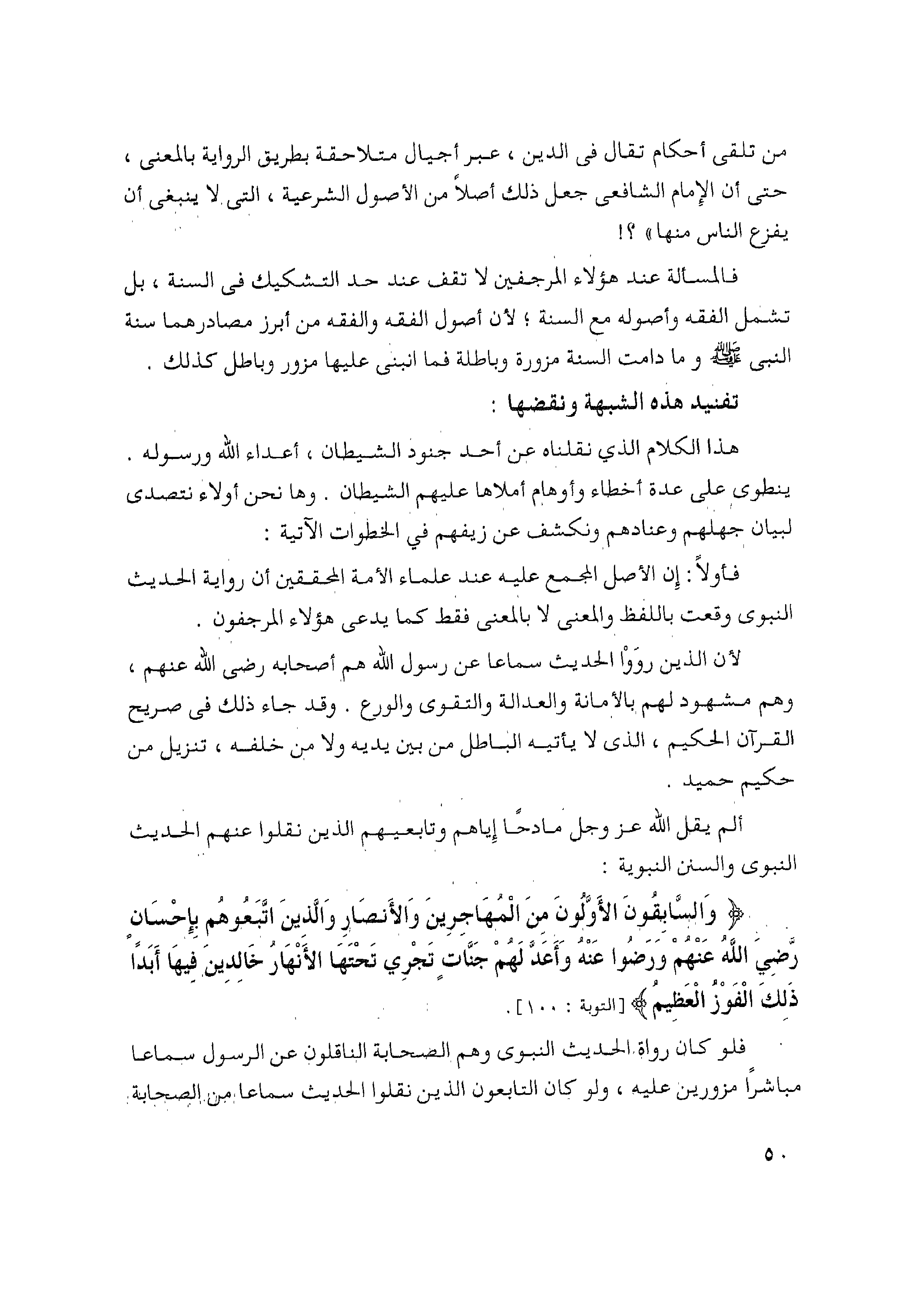 من تلقى أحكام تقال في الدين، عبر أجيال متلاحقة بطريق الرواية بالمعنى، حتى أن الإمام الشافعي جعل ذلك اصلاً من الأصول الشرعية، التي لا ينبغي أن يفزع الناس منها"؟!