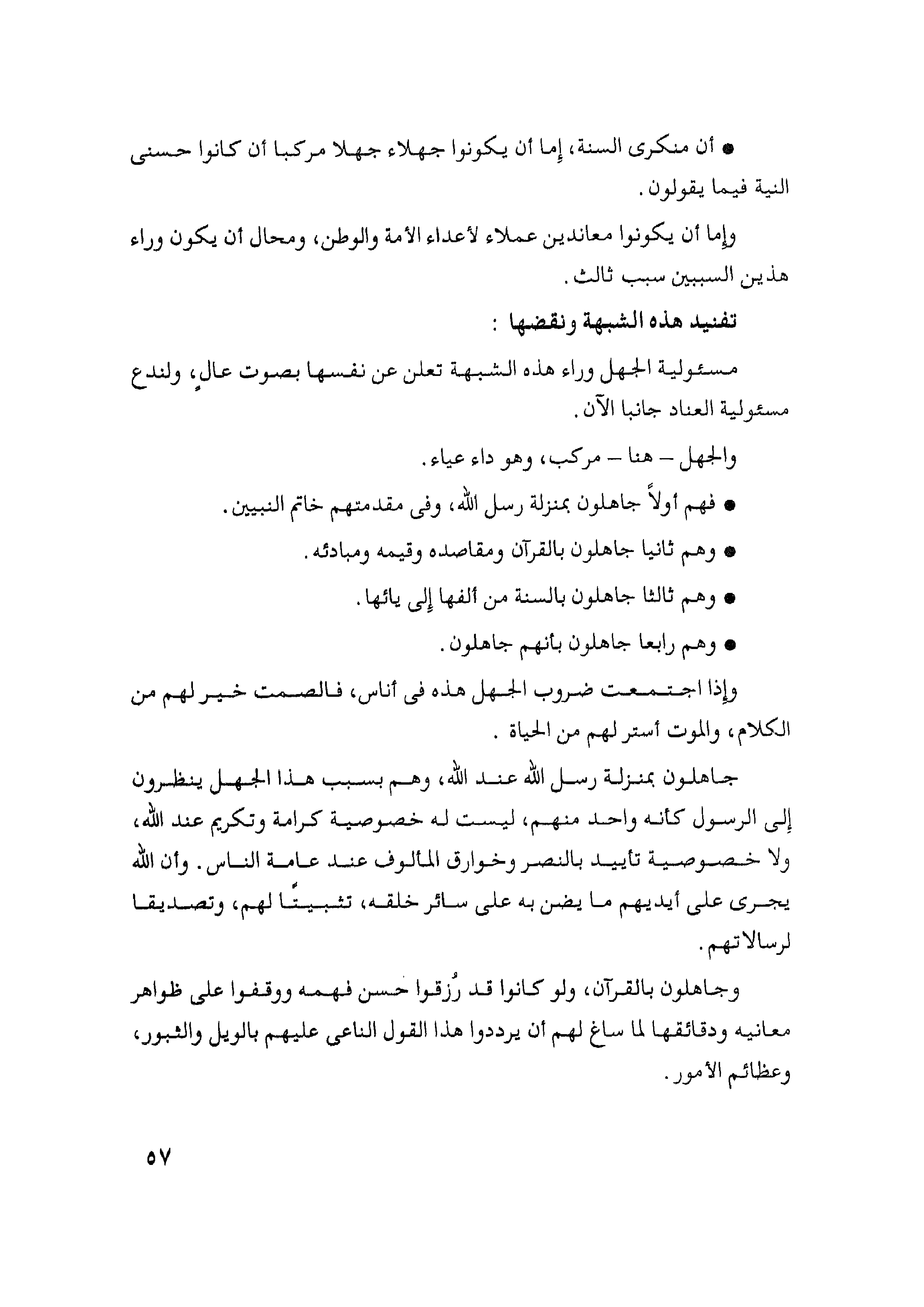 مسئولية الجهل وراء هذه الشبهة تعلن عن نفسها بصوت عالٍ، ولندع مسئولية العناد جانباً الآن.