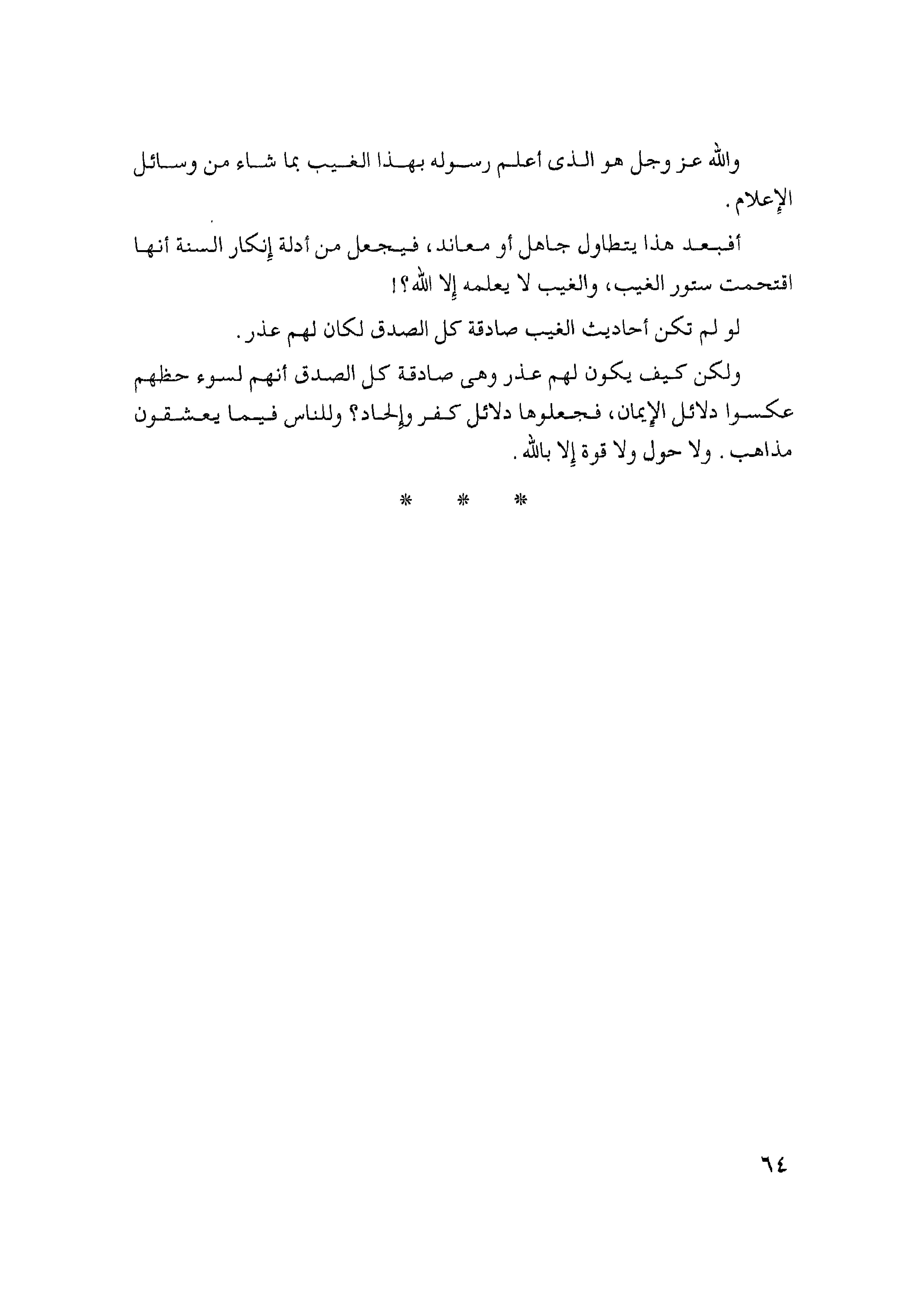 أفبعد هذا يتطاول جاهل أو معاند، فيجعل من أدلة إنكار السنة أنها اقتحمت ستور الغيب، والغيب لا يعلمه إلا الله؟!