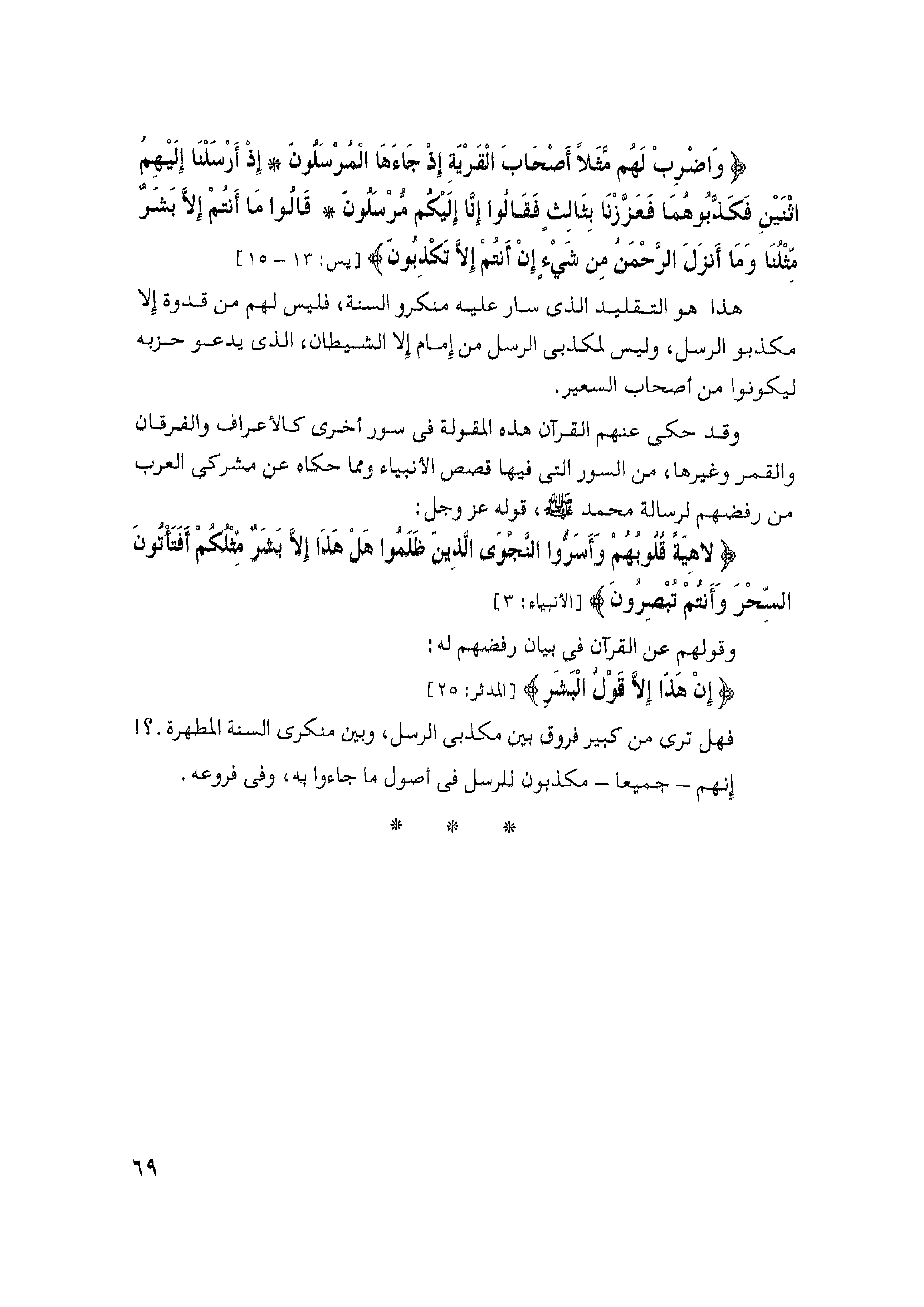 فهل ترى من كبير فروق بين مكذبي الرسل، وبين منكري السنة المطهرة.؟!