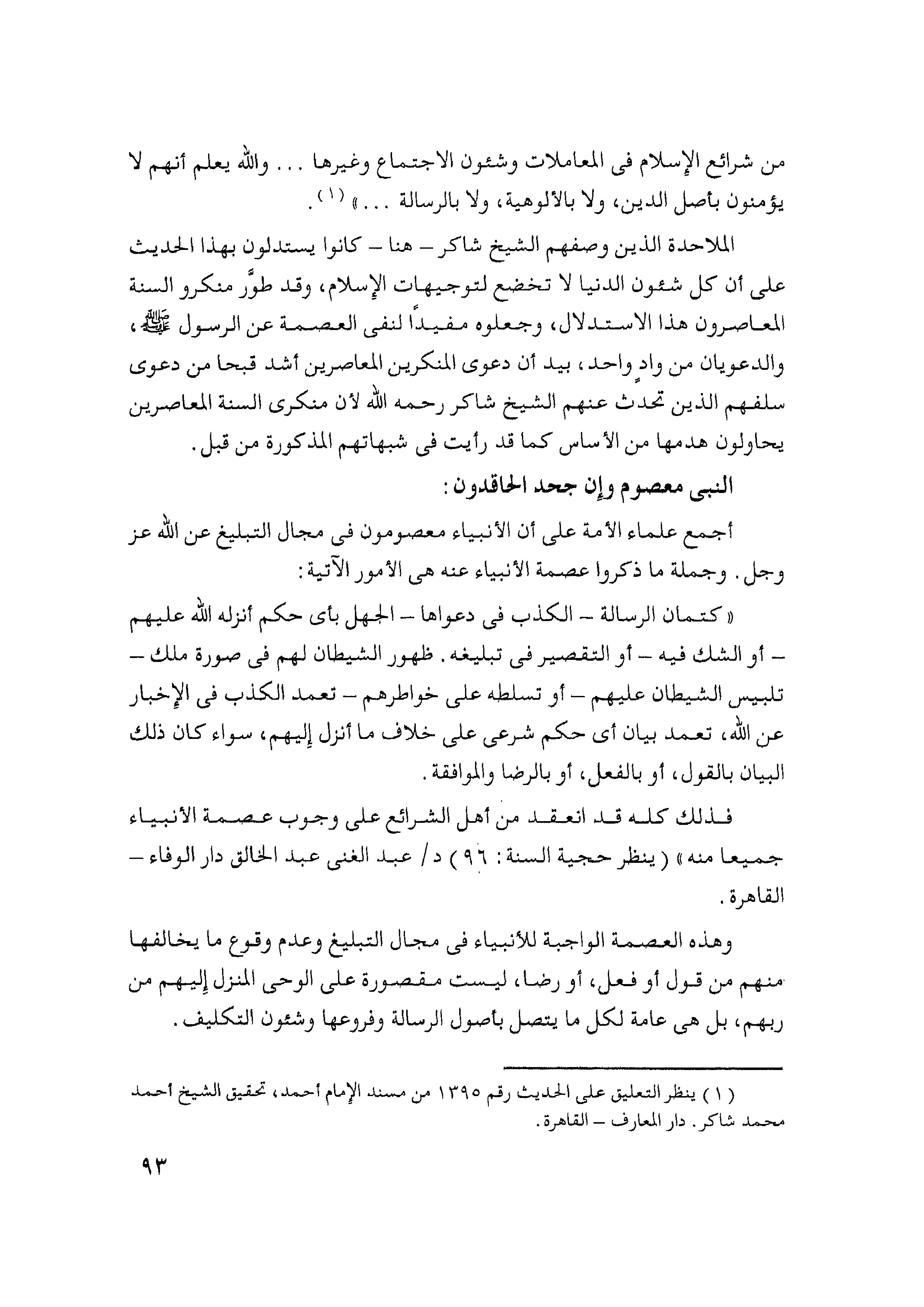 فذلك كله قد انعقد من أهل الشرائع على وجوب عصمة الأنبياء جميعاً منه" (ينظر حجية السنة: 96) د/ عبد الغني عبد الخالق دار الوفاء - القاهرة.