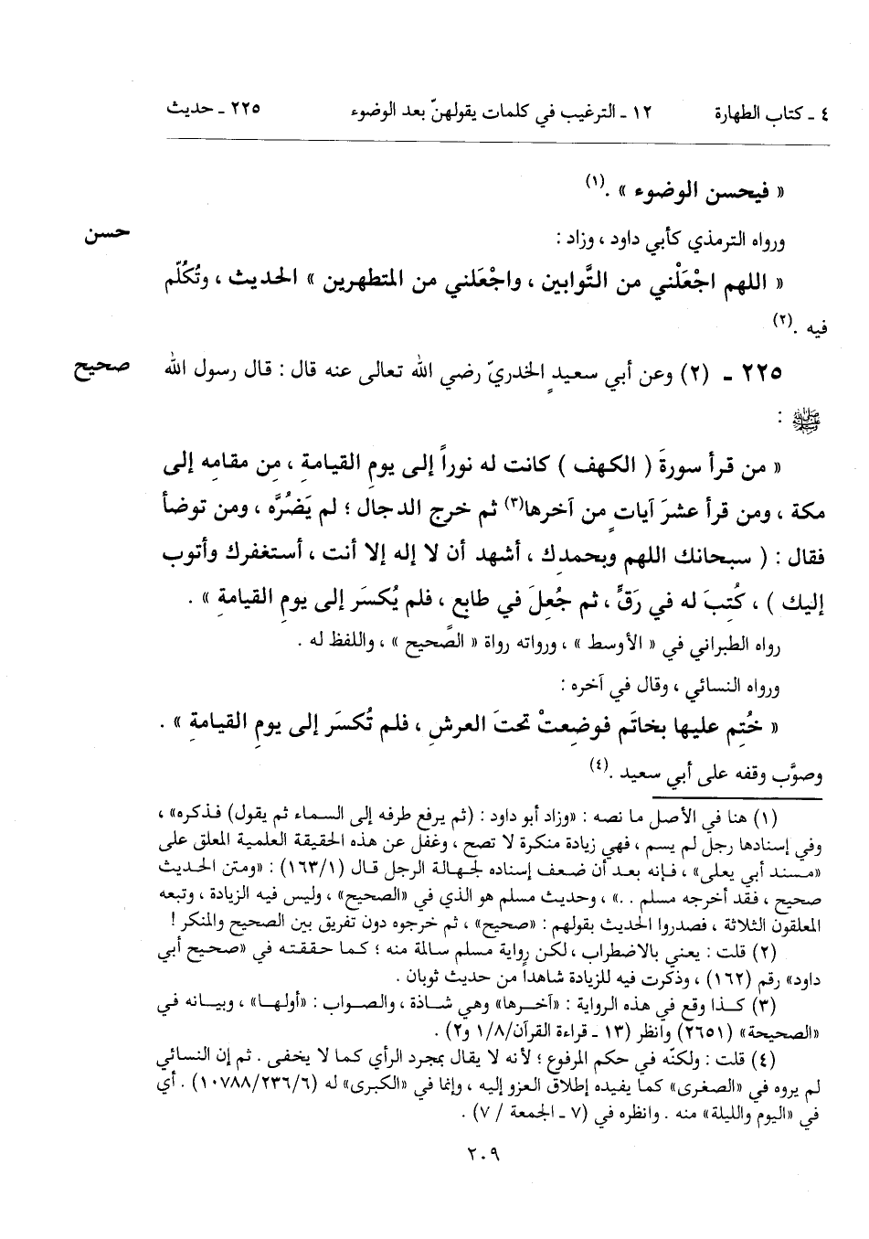 225 - (2) [صحيح] وعن أبي سعيدٍ الخدريّ رضي الله تعالى عنه قال: قال رسول الله - صَلَّى اللهُ عَلَيْهِ وَسَلَّمَ -: