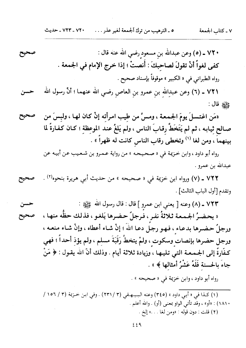 722 - (7) [صحيح] ورواه ابن خزيمة في "صحيحه" من حديث أبي هريرة بنحوه (¬2).