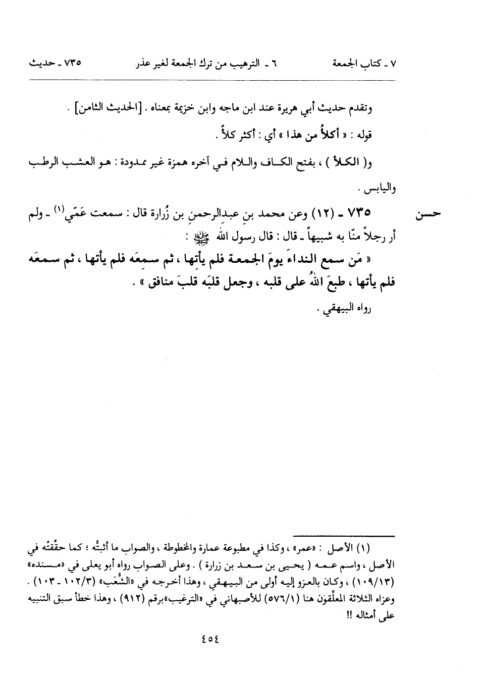 (¬1) الأصل: "عمر"، وكذا في مطبوعة عمارة والمخطوطة، والصواب ما أثبتّه؛ كما حقَّقتُه في الأصل، واسم عمه (يحيى بن سعد بن زرارة). وعلى الصواب رواه أبو يعلى في "مسنده" (13/ 109)، وكان بالعزو إليه أولى من البيهقي، وهذا أخرجه في "الشُّعَب" (3/ 102 - 103).