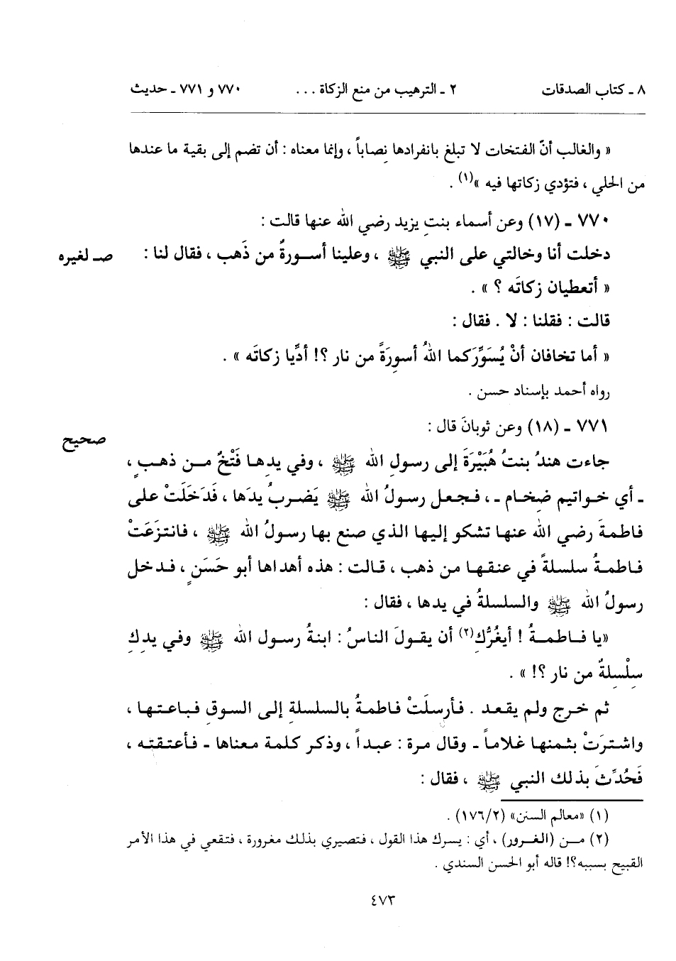 "أما تخافان أنْ يُسَوِّرَكما اللهُ أسوِرَةً من نار؟! أدِّيا زكاتَه".