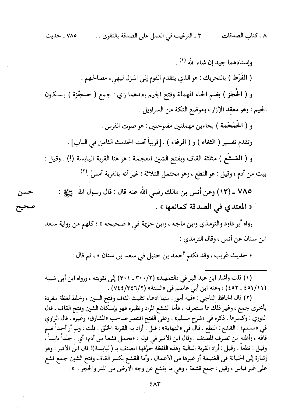 785 - (13) [حسن صحيح] وعن أنس بن مالك رضي الله عنه قال: قال رسول الله - صَلَّى اللهُ عَلَيْهِ وَسَلَّمَ -: