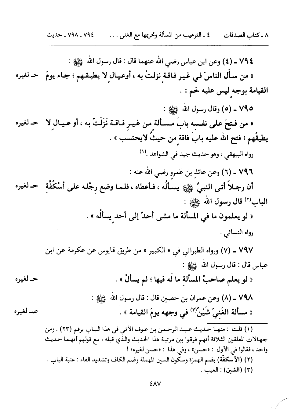 798 - (8) [صحيح لغيره] وعن عمران بن حصين قال: قال رسول الله - صَلَّى اللهُ عَلَيْهِ وَسَلَّمَ -: